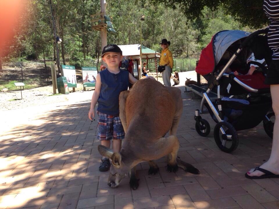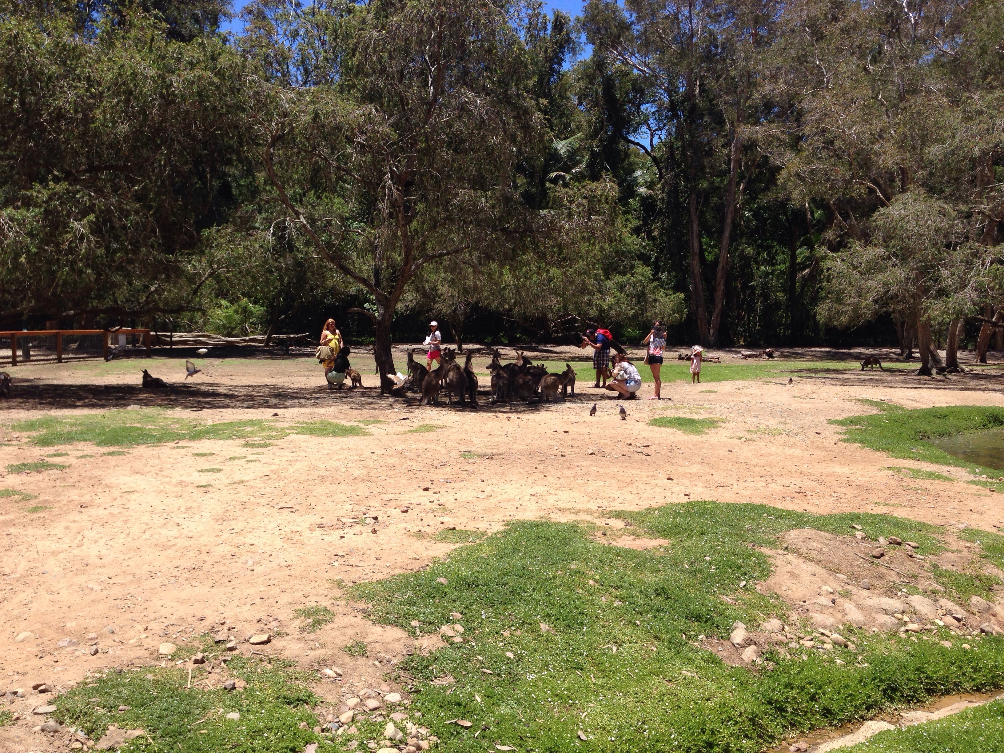 Jack from Kansas was visiting the branch, so we invited him to tag along with us on Saturday as we made a 2nd attempt to make it through Currumbin Wildlife Sanctuary. We caught the train in the park and rode it back to that far end of the park, to Kangaroo Crossing. Mind blown. There were kangaroos everywhere. Big ones. Little ones. Babies INSIDE the mama’s pouches. There were emus, as well. People were mingling with the kangaroos, petting, hugging, feeding. It was one of the coolest experiences ever.