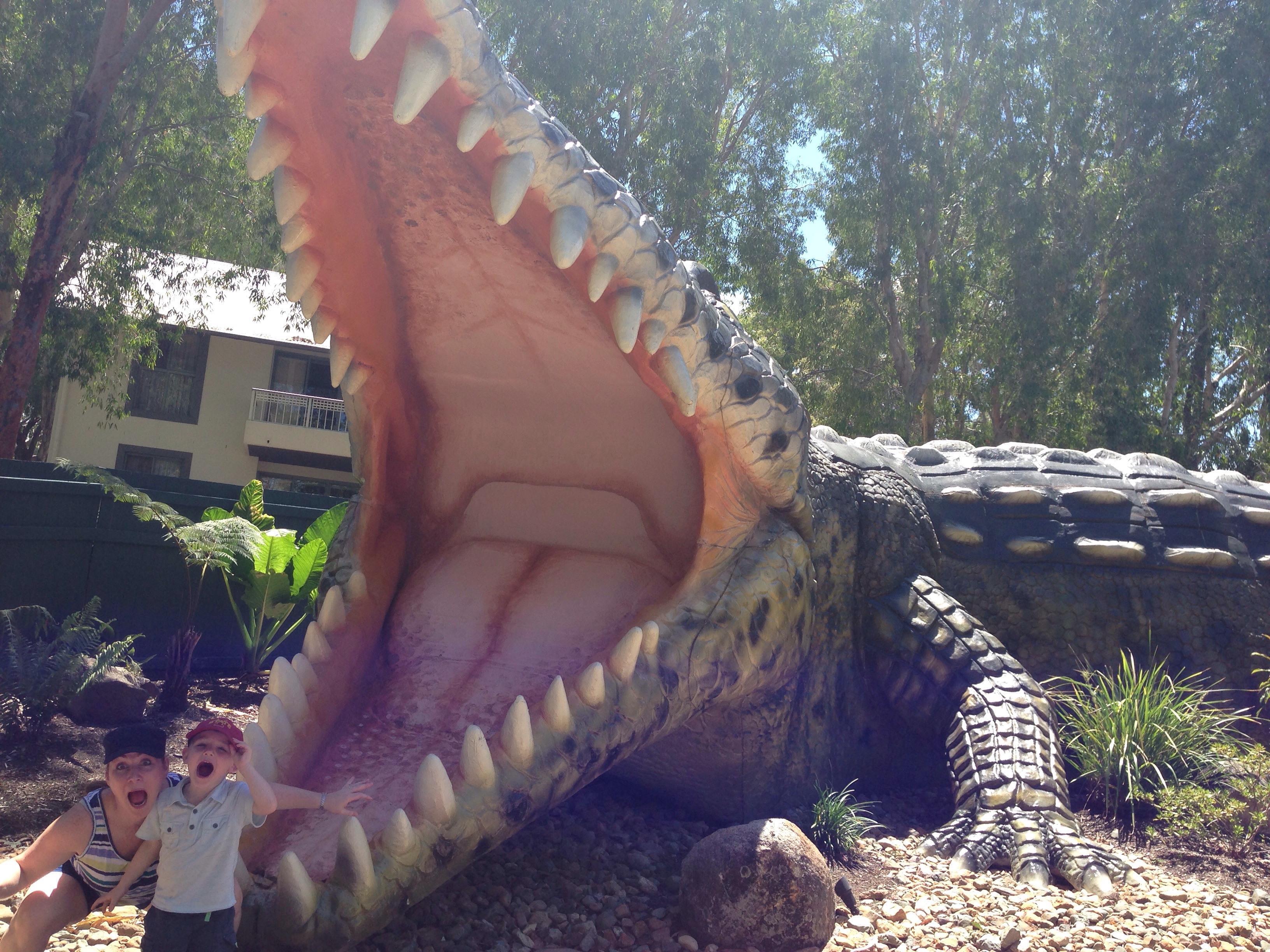 So one of my worst fears happened today. Because we had such an awesome experience at Currumbin, and Ty LOVES all animals, even though jay and I tell him over and over again to be careful, go slow, yadda yadda, Ty came across an angry kangaroo today. The Australia Zoo has a huge park like setting that has a few kangaroos. Some people were petting them. Ty went up to one that was laying down, and even though he went up to it pretty slow, it didn’t feel like getting touched. Without any warning, it reached out its paws that unfortunately have some long nails and scratched his chin and chest. He cried and cried. It definitely hurt, scared him, and probably broke his heart a little that the kangaroo didn’t want to be his best friend. :(. Like a trooper, though, he didn’t want to leave. We washed off his battle scars as best we could and kept making our way through the zoo. He learned a valuable lesson today about animals. Hopefully he will remember this the next time he comes across animals. I just hate that he go hurt, especially by an animal that we get so excited about seeing. We thought that we better pick up a kangaroo toy when we left. On the bright side, there aren’t that many dudes out there that can say they got attacked by a kangaroo. It will be a great ice breaker for him throughout his life…”hi, my name is Ty. I got attacked by a kangaroo once. What’s your name? Do you want to play with me?”