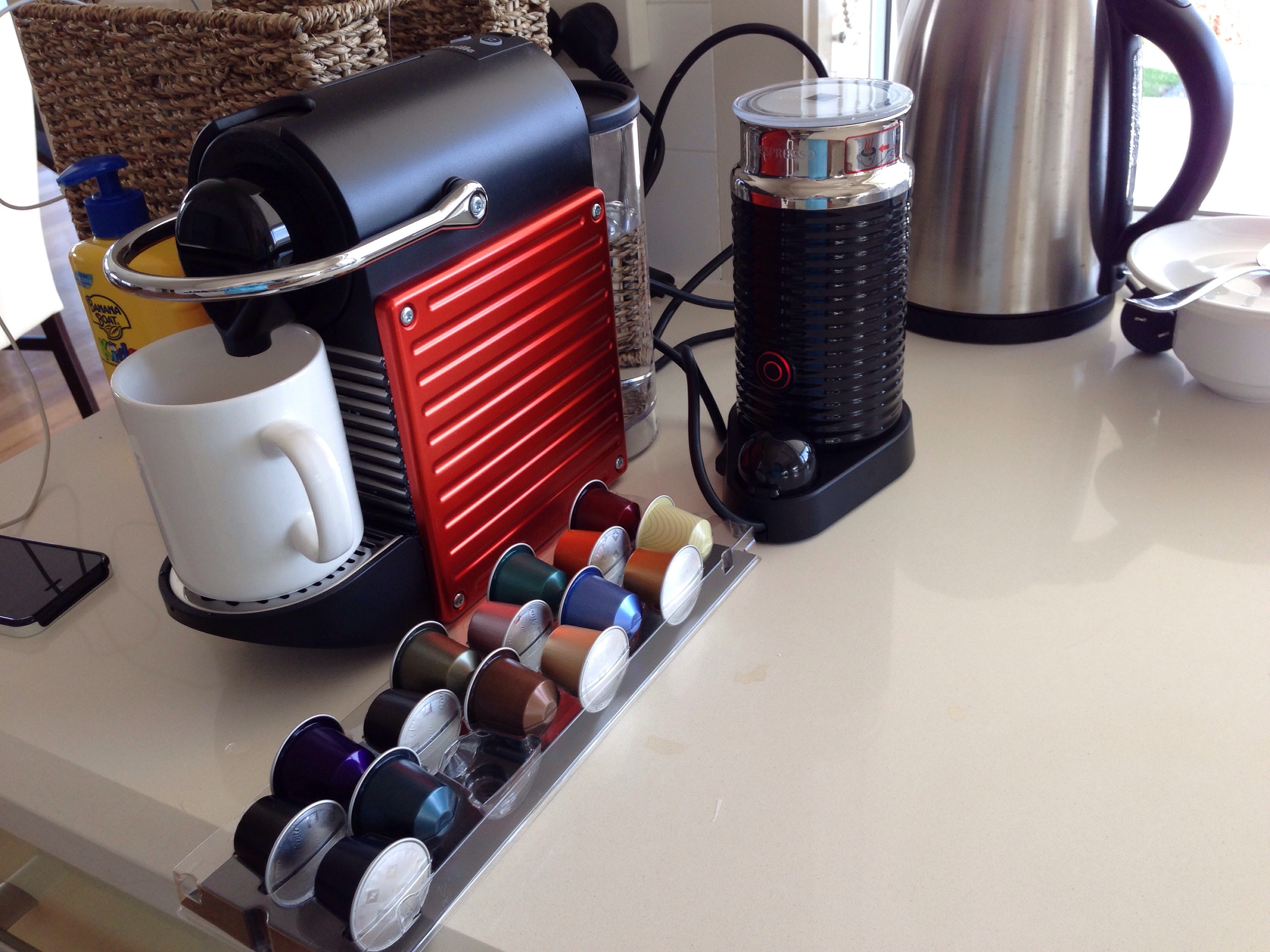 Jay bought me a coffee maker today. They don’t have anything like I am used to back home, so he came back with an espresso machine that has a separate milk frother. Fancy! It has a bunch of sample pods, so I can try them all out and figure out what flavor I like best. The first one I had was pretty good. The coffee fills a normal coffee cup only about halfway. I filled the rest with my fancy frothed milk. Not bad, not bad. I am either caffeine deprived or the coffee here is mega strong, because I felt like I was totally jacked up. I am anxious to try the other flavors. Thanks Jay!!