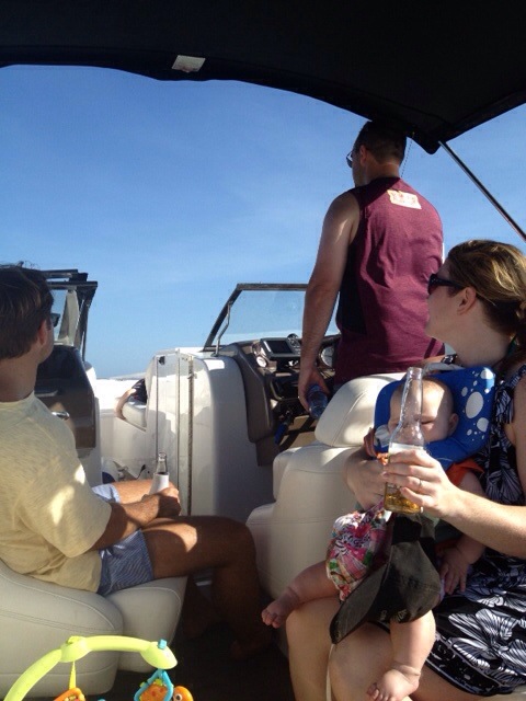 Ty wanted to go back to the playground one more time, so I went to the car to feed Lily while Jay went to the playground. I got a text message saying Ty wanted his chips. He hadn’t eaten much brekky because we were rushing to leave, so the poor kid was starving. Like awesome parents, we thought a bag of chips after swim lessons was a good substitute. And orange juice. Apparently while I was not at the park (I would not have allowed this…) Ty got on this ring around a pole and spun around and around and around. Ok. This is the kid that is Nana’s grandson, who can’t take two left turns without getting car sick. What do you think happened? Yep. Ty puked up his orange juice and chippies at the skatepark. I pushed him in the stroller back to the car, headed home, and he puked again. He caught most of it in his airplane puke bag (Memaw, please get some more on your flight over). The rest of the morning was pretty relaxed, letting both kids’ tummies heal up (and letting mama sneak in a nap on the playroom floor). I think jay was passive aggressively telling me that he wasn’t impressed that I fell asleep because he posted this picture on Facebook. It isn’t obvious that there is a sleeping mama under the blanket…