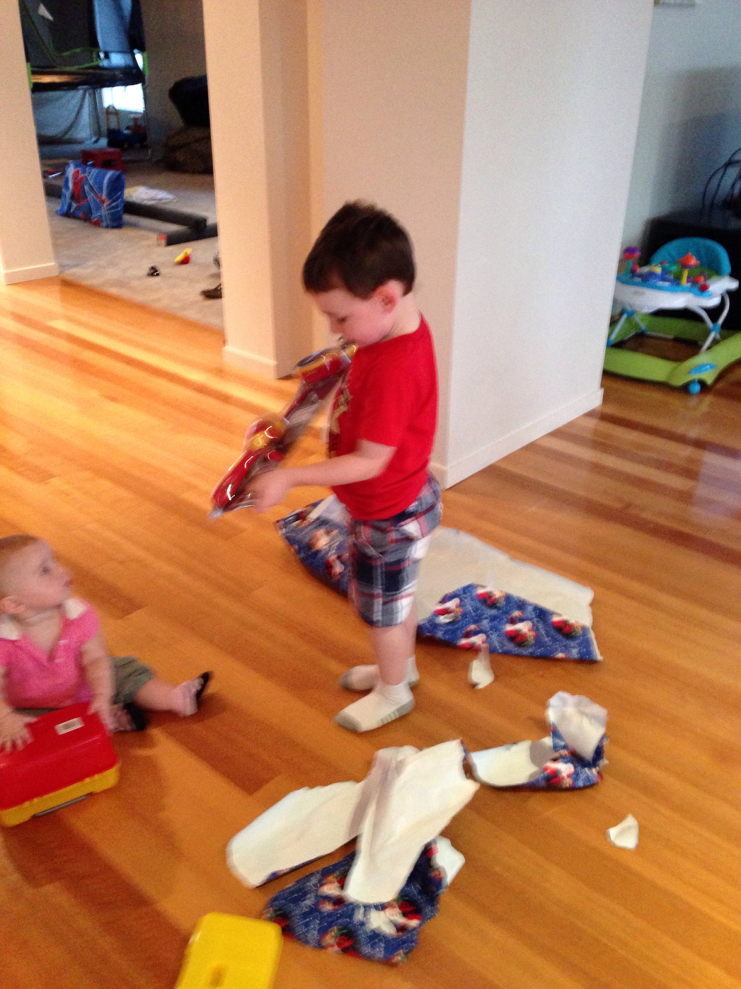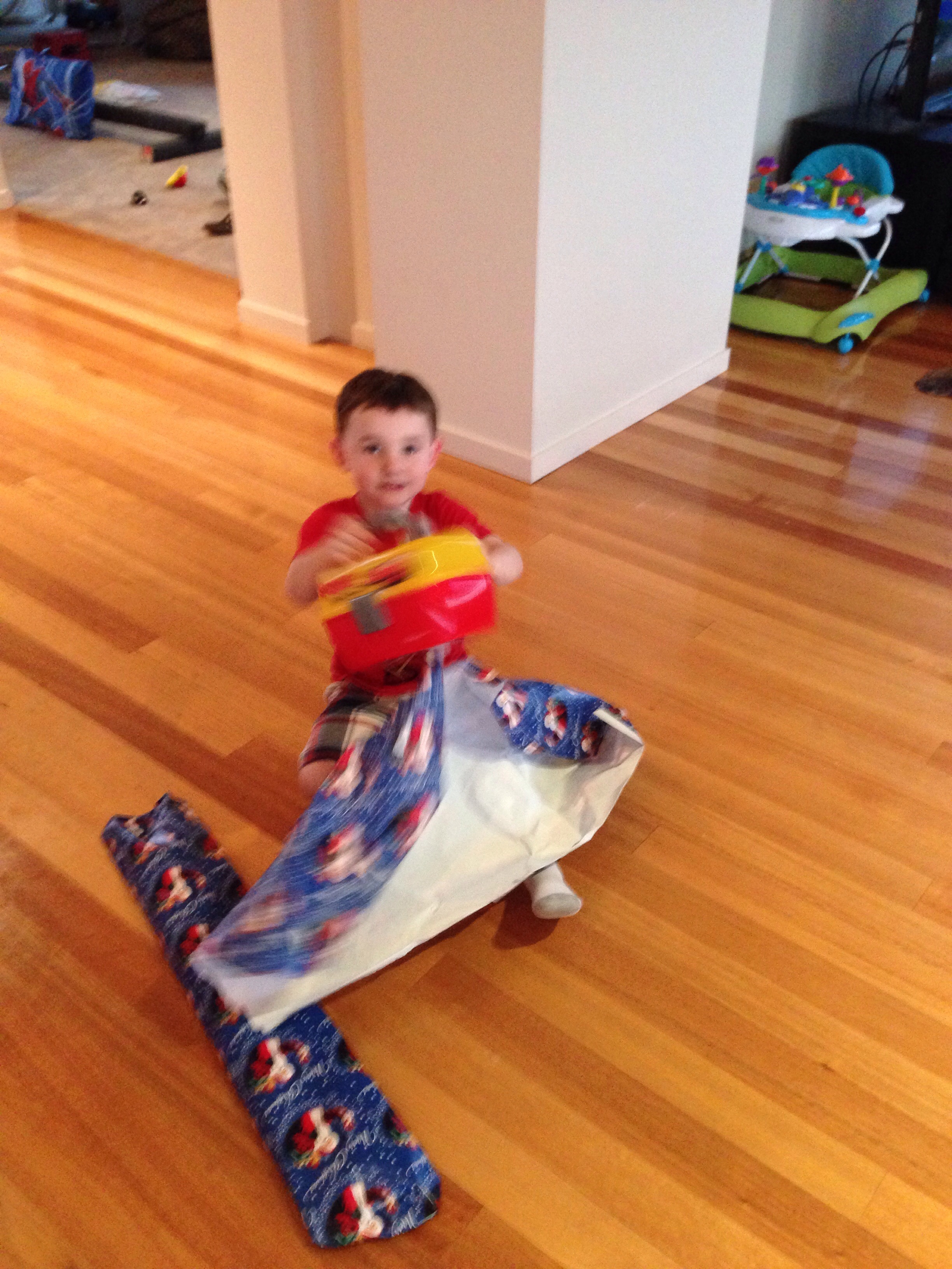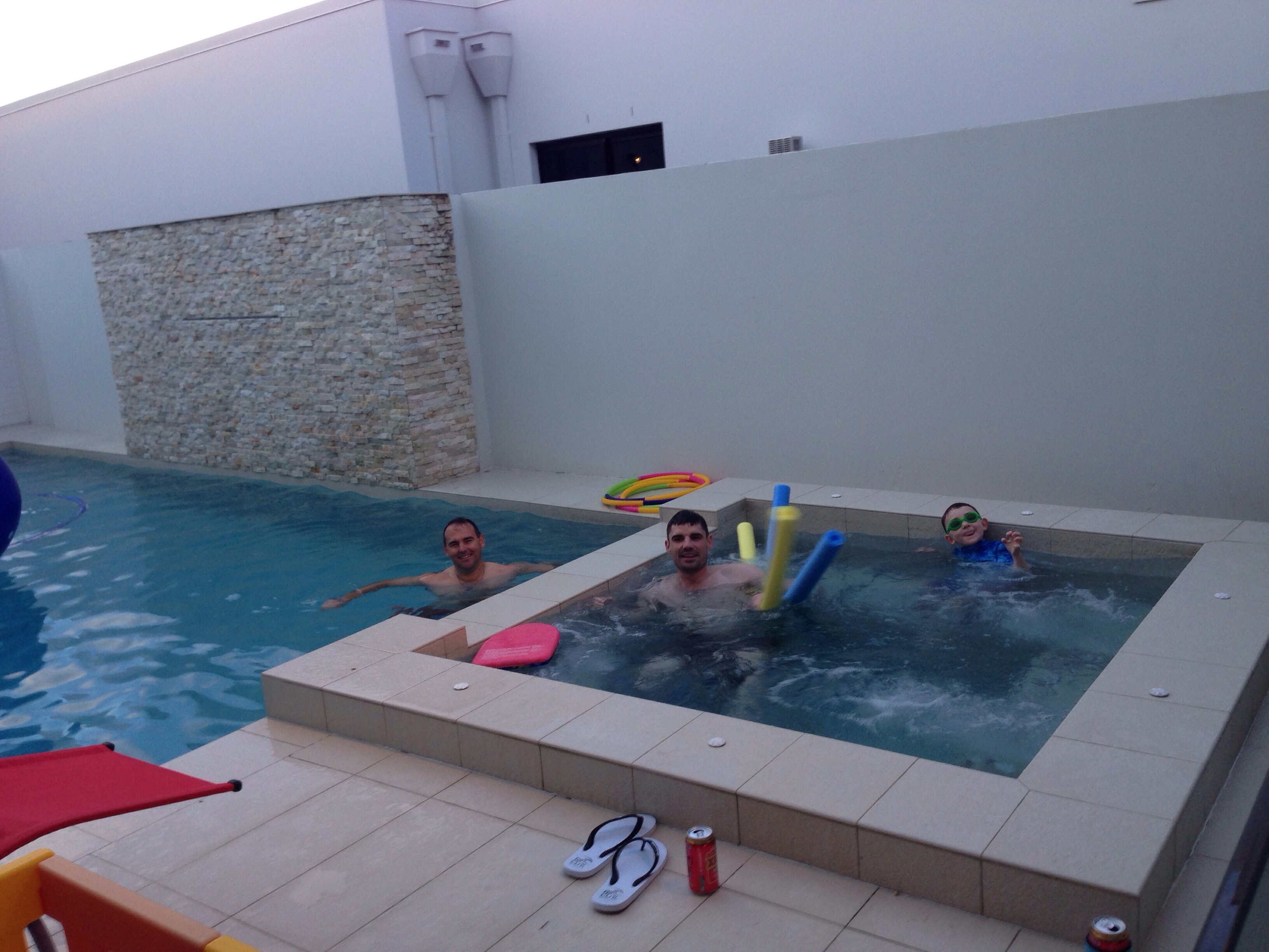 The boys went out pretty far into the ocean this time. Far enough that the waves were picking them up. They found a rock pool and Ty, who earlier in the day said he didn’t want to get wet and therefore didn’t put on board shorts, wanted to join them. He didn’t want to go in in his mesh shorts, so he kicked them off and jumped in wearing just his undies. Who brought the bogan to the beach??? He had fun, though. Lily spent most of the day crawling on the beach, only trying to sneak in a handful of sand a few times. :). Fun day!