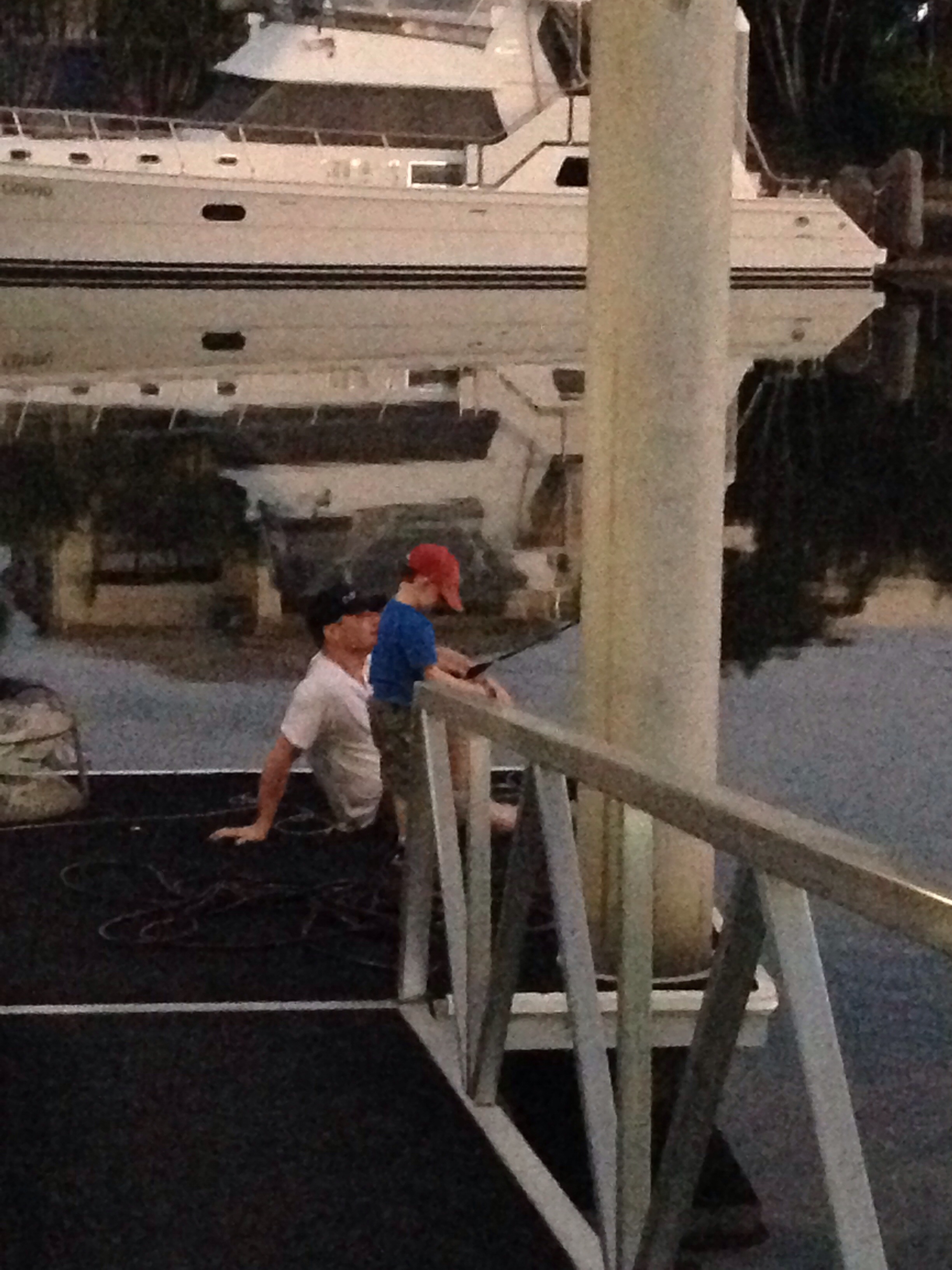 Jay had picked up some fishing tackle, so they attempted to catch some fish, but did more casting than fishing. Got skunked. As soon as I got home with the kids, Ty wanted to go down to the dock and try to catch some fish. He lasted about 5 minutes, but it was cute to see him try.