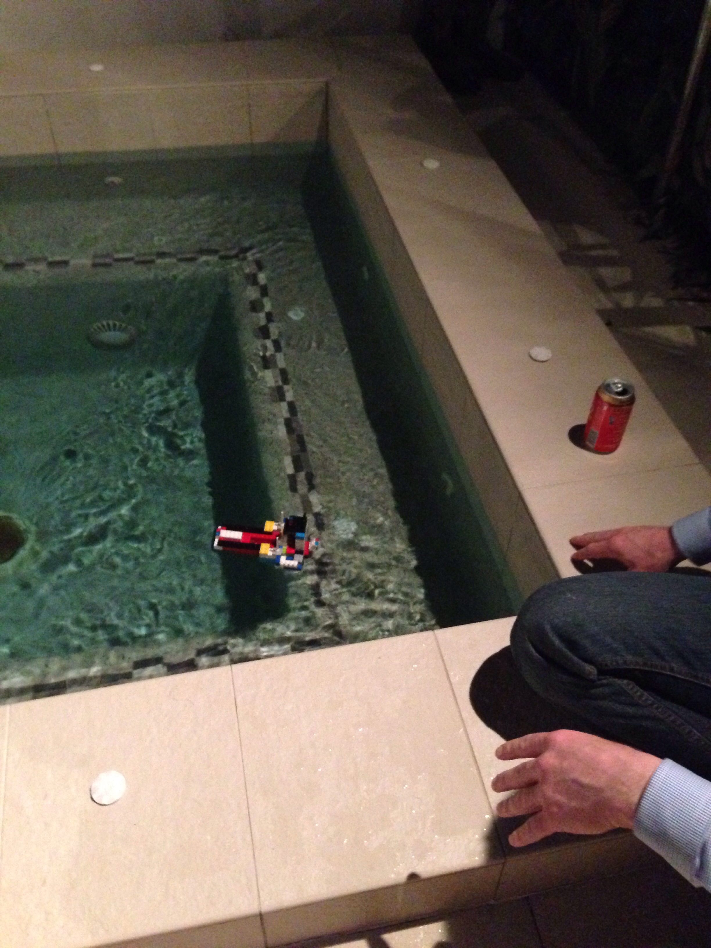Rick had been struggling to find ways to keep himself entertained, until he saw Ty’s big box of Legos. He built a ship for Ty, so when we got home we had to test it out. After a bit of re-engineering, it floats!