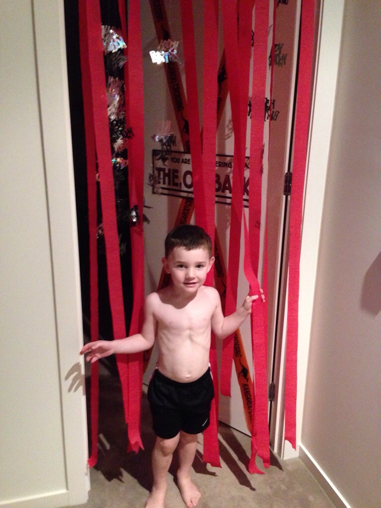 Saturday morning we had swim lessons and gymnastics. At swimming, the instructor unhooked the rope separating 2 smaller areas in the pool and had the kids try to swim the whole way. Ty couldn’t quite do it. She told us later that she did that to see if Ty is ready to move to the next level, and he just wasn’t quite there. So close!