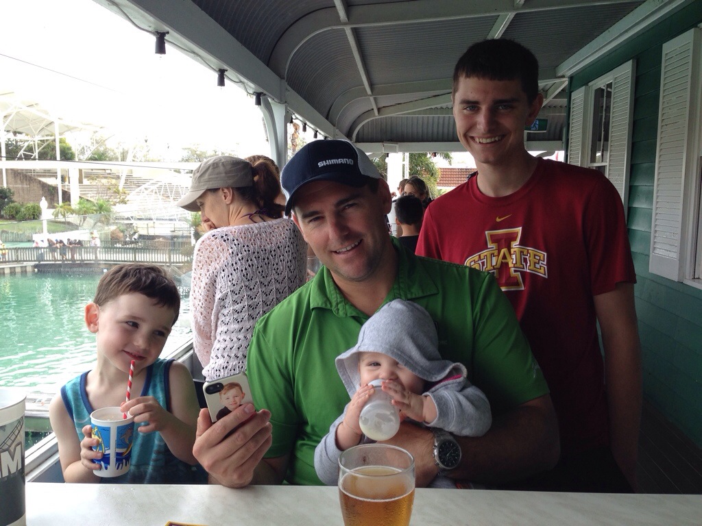 Jay stayed home with Rick on Wednesday. Of course they went out on the boat, and once again I had to see pictures of them on the boat while I was sitting at my desk. They cruised over to Tipplers and beached the boat. The plan was to have lunch but the restaurant was closed. They walked over to the surf side of the island and walked the beach, looking for sea shells. There was only one other person on the beach for miles. They were getting hungry so they tried to go down towards Surfers Paradise. We haven’t had much luck getting down there in the past, as the big boats cruise that way and make the water too rough. Since it was the middle of the week, there weren’t many people out, so the water was fine. They docked and ate at Marina Mirage. Jay took Rick into the Versace Palazzio hotel. Pretty fancy.