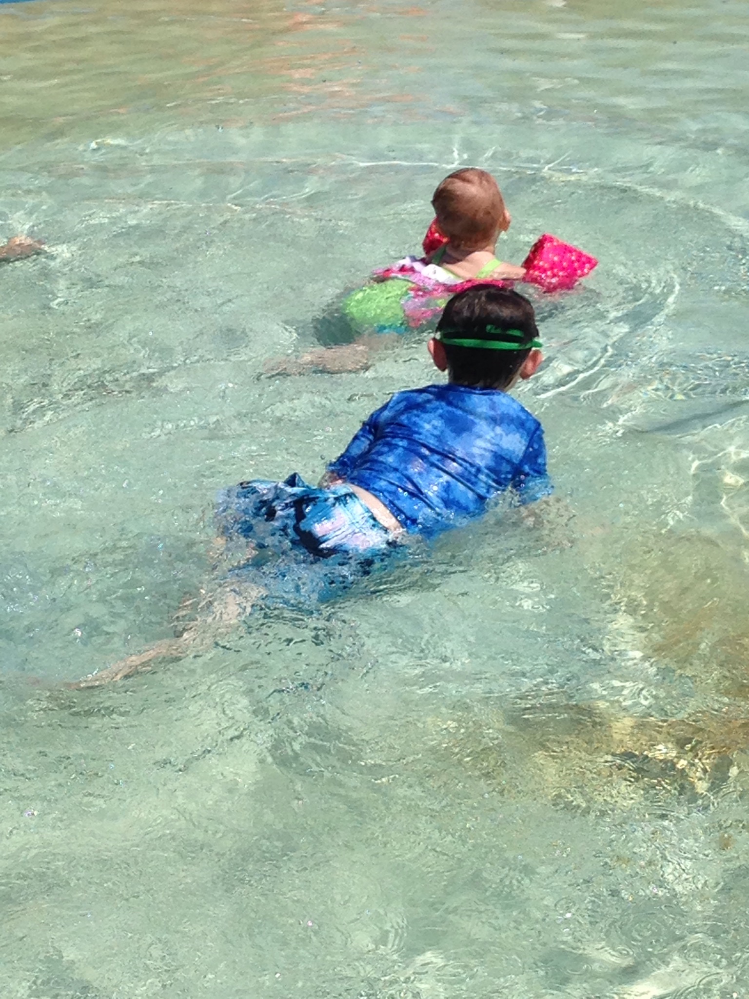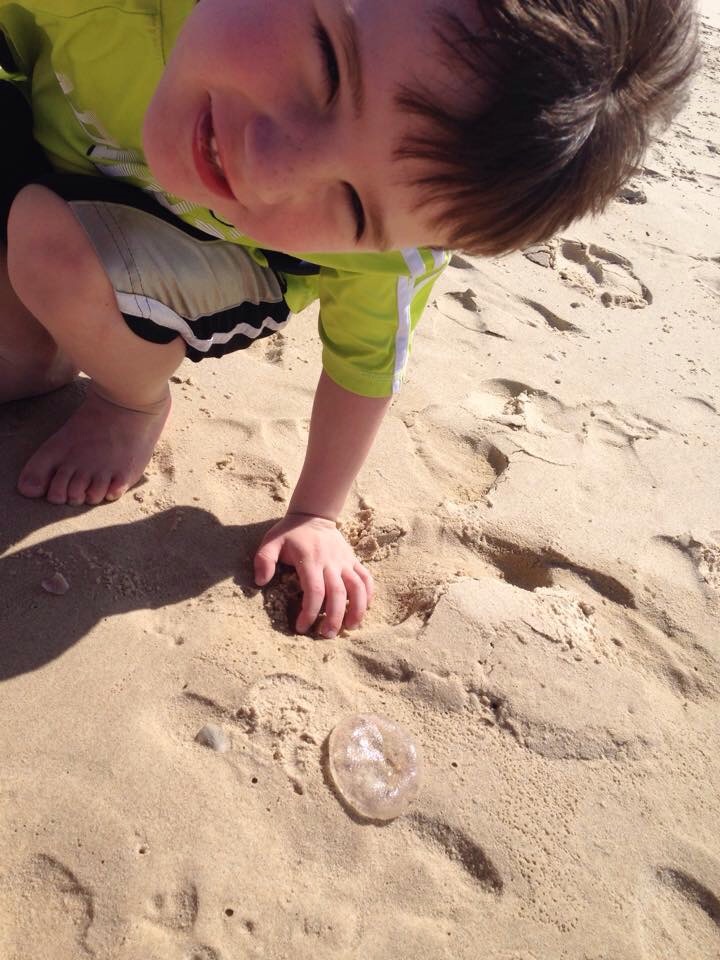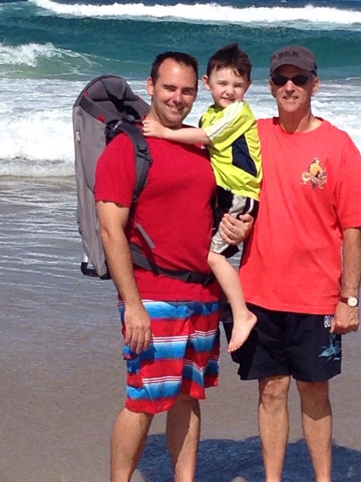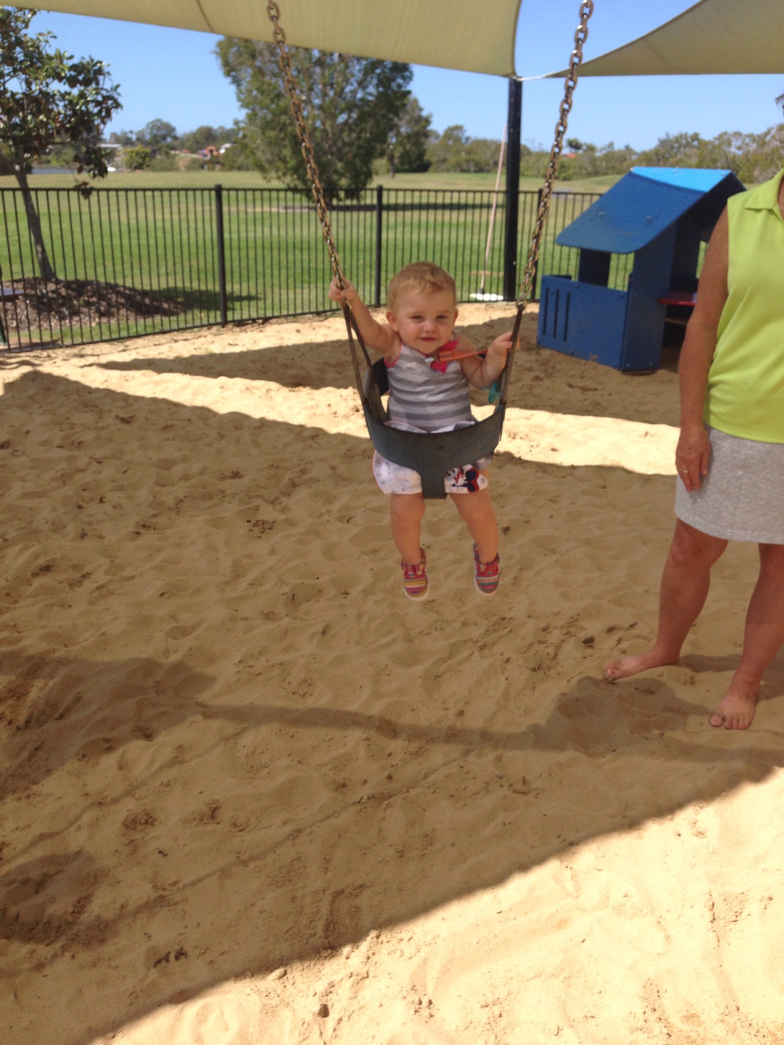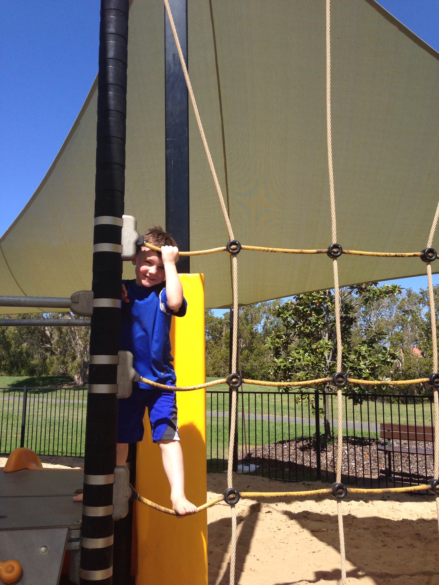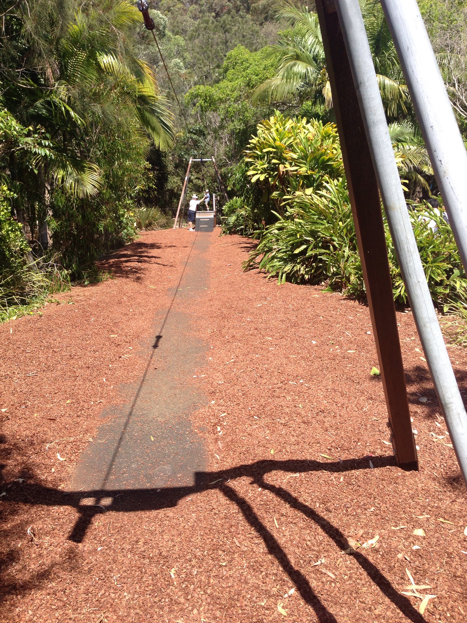 The playground equipment at Currumbin has a zip line for the kids. We have tried to get Ty to hop on before, and we wouldn’t do it. This time he was up for the challenge. He LOVED it. Papa pushed him on one end, Jay pushed him back. He had a blast. I think this would be a great addition to Leaf Lake – a zip line from the treehouse to the swimming pool…