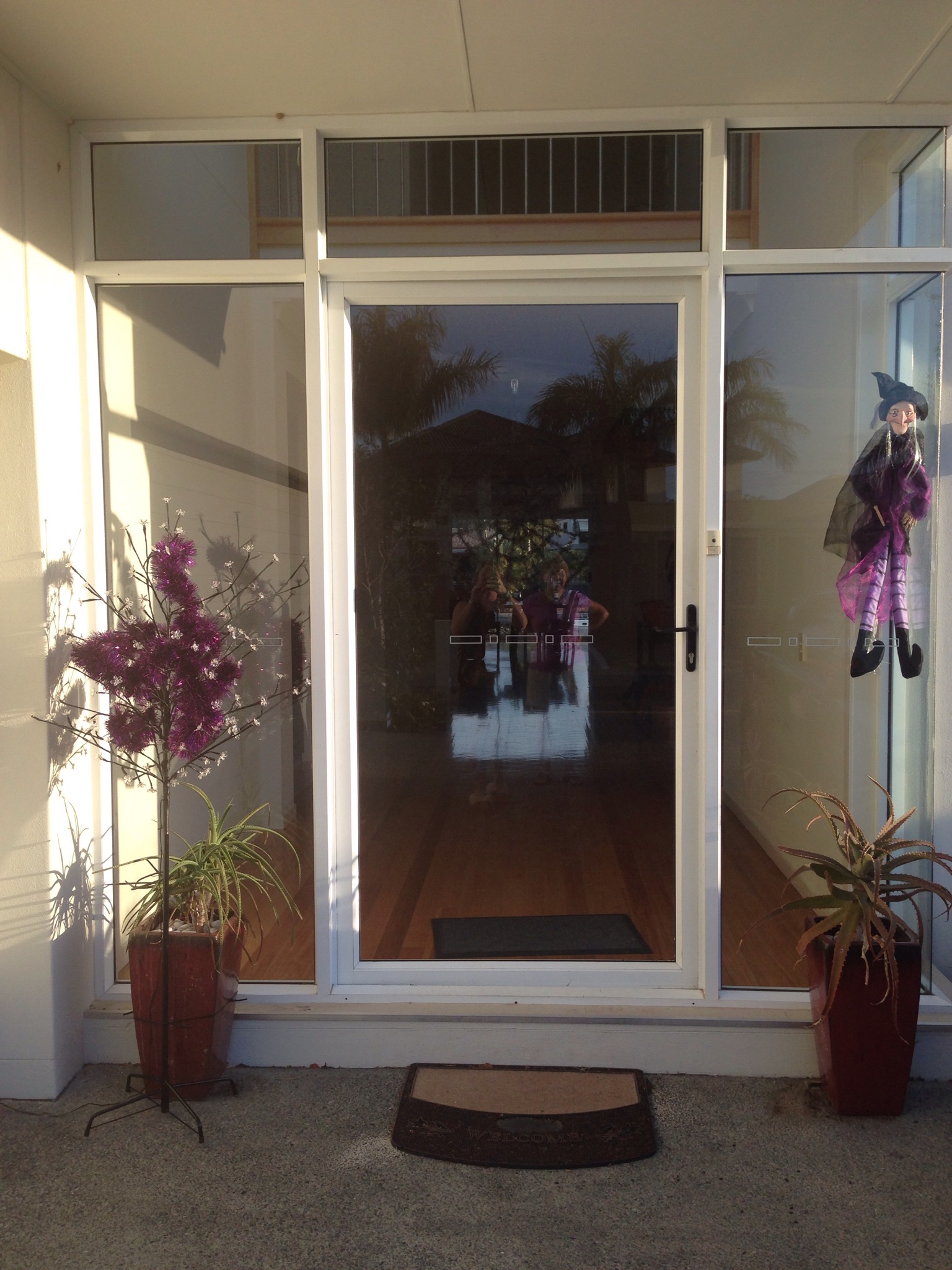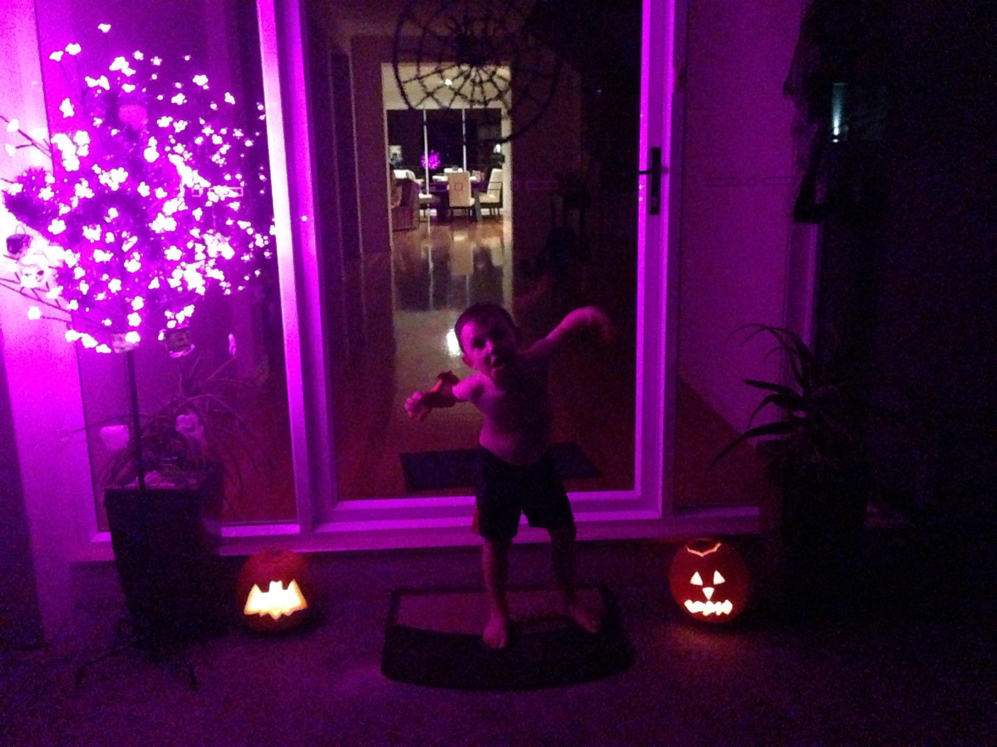 I now feel added pressure to make sure my children get to experience Halloween as it should be experienced. I went shopping for Halloween decorations, and our front entrance now consists of a purple lighted tree, a flying witch, and a spider web. We have a giant spider hanging off our stair railing. And I have 2 bags of decorations that will be put on the buggy this week. We will be carving 2 pumpkins (that cost a small fortune, by the way – the first store we went to was charging $25 for 1 pumpkin!!). Oh, and I put a Halloween music station on my Pandora to blast out of speakers while trick or treating. Take that, Australia.