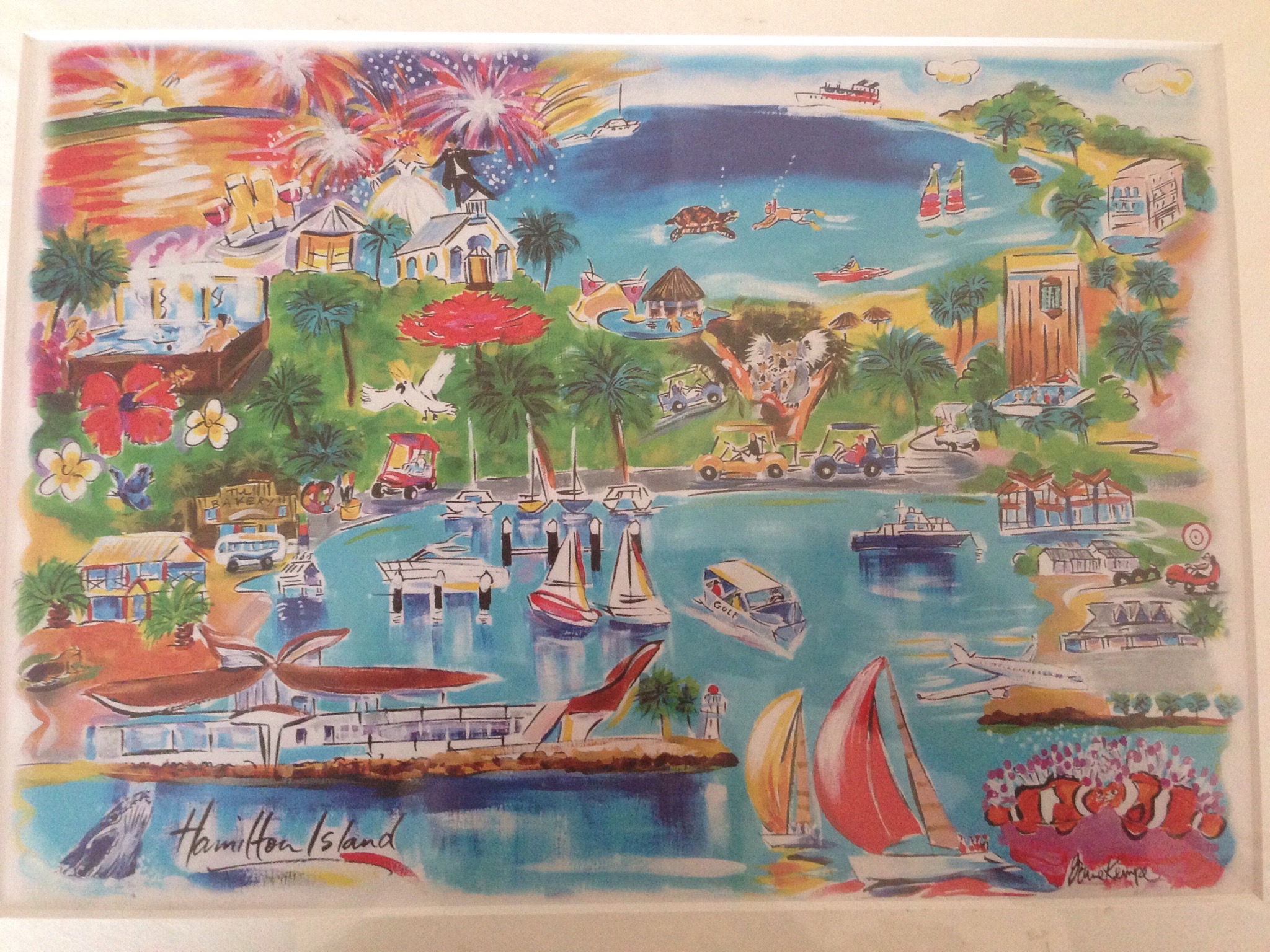 I also forgot to include pictures of the artwork that we bought on Hamilton Island. Sherry and I both bought the print of the whole island, and I also picked up the One Tree Hill piece by the same artist. Love them.
