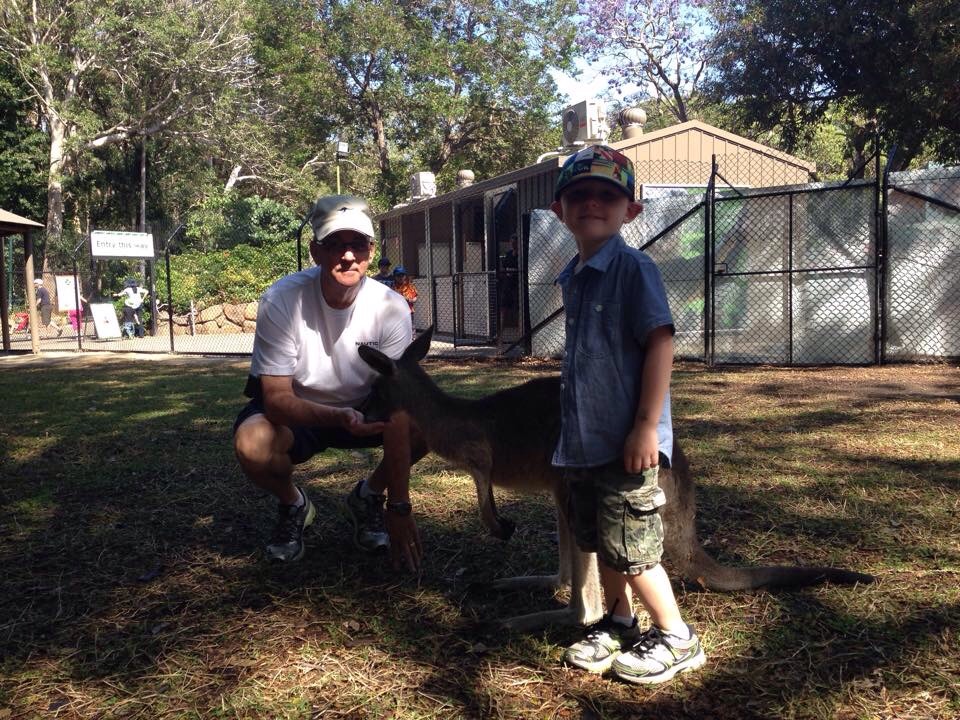 While the big kangaroo park is closed for renovations, they have a smaller area set aside with a few kangaroos that you can pet. Kirk got to pet a kangaroo. Ty had fun feeding them.