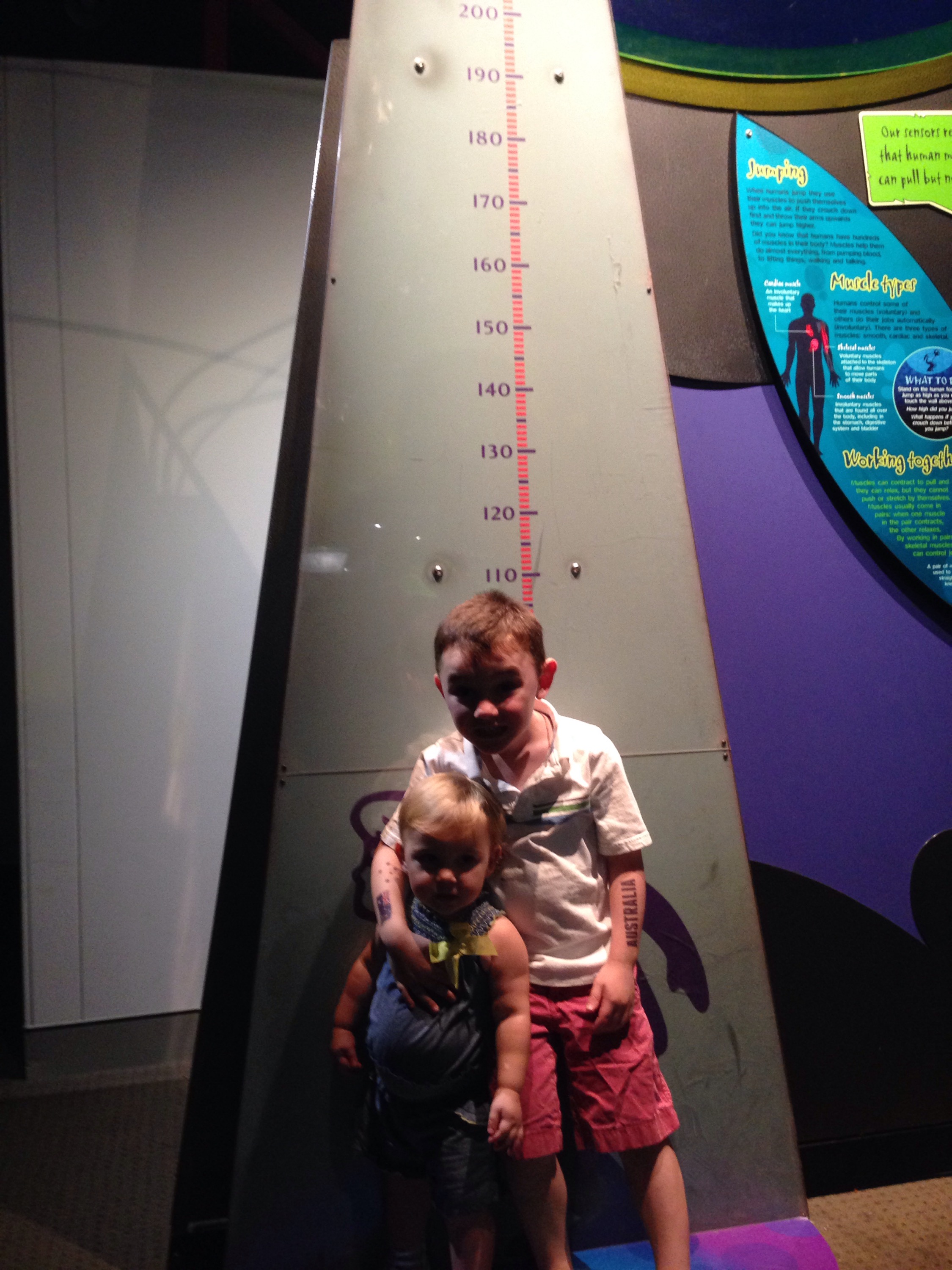 Science is awesome. And the Queensland Museum of Science is too. You know how most museums have all sorts of fun buttons that you can push that look like they will do something cool but they end up being broken? Jay and I have a song that we sing whenever we go to museums – “everything is BROKEN! Broken-broken-broken-BROKEN!” Hats off to the Queensland Museum. We only came across one thing that was broken. They had some really cool displays. Lily was fascinated by the stages of pregnancy display. It would only work if I held the ultrasound device on the creepy mannequin’s belly…the things I do for my children. They had a bed of nails display – Ty was too scared to try it. He loved the electric ball, and the spinning planet display (like those spiral coin donation things at SAMs Club). The taxidermy area was cool – I was surprised at how “normal” the size of the รผber poisonous redback spider is. I was imagining it to be huge. Now I am even more terrified of the spiders here. My most favorite part of the museum was the underwater display. I could have sat in that room for hours looking at everything. Not to be confused with the Underwear display. 350 years of underwear fashion that if you wanted to be creepy enough to see you had to pay extra for. I can’t imagine that is a big money maker for the museum… Fun day!