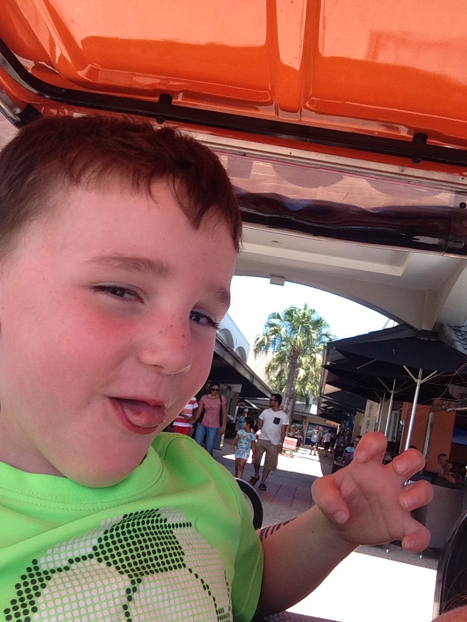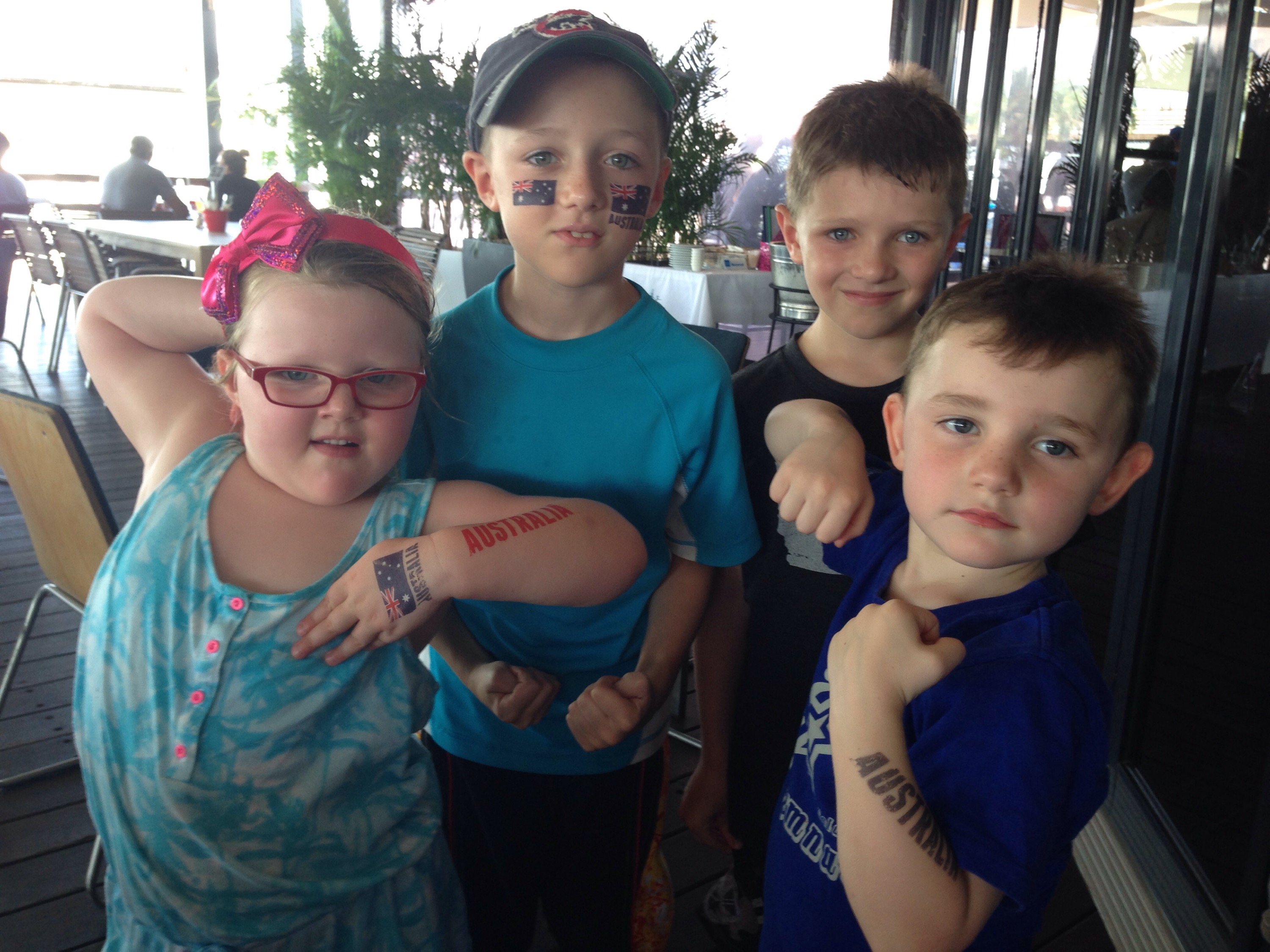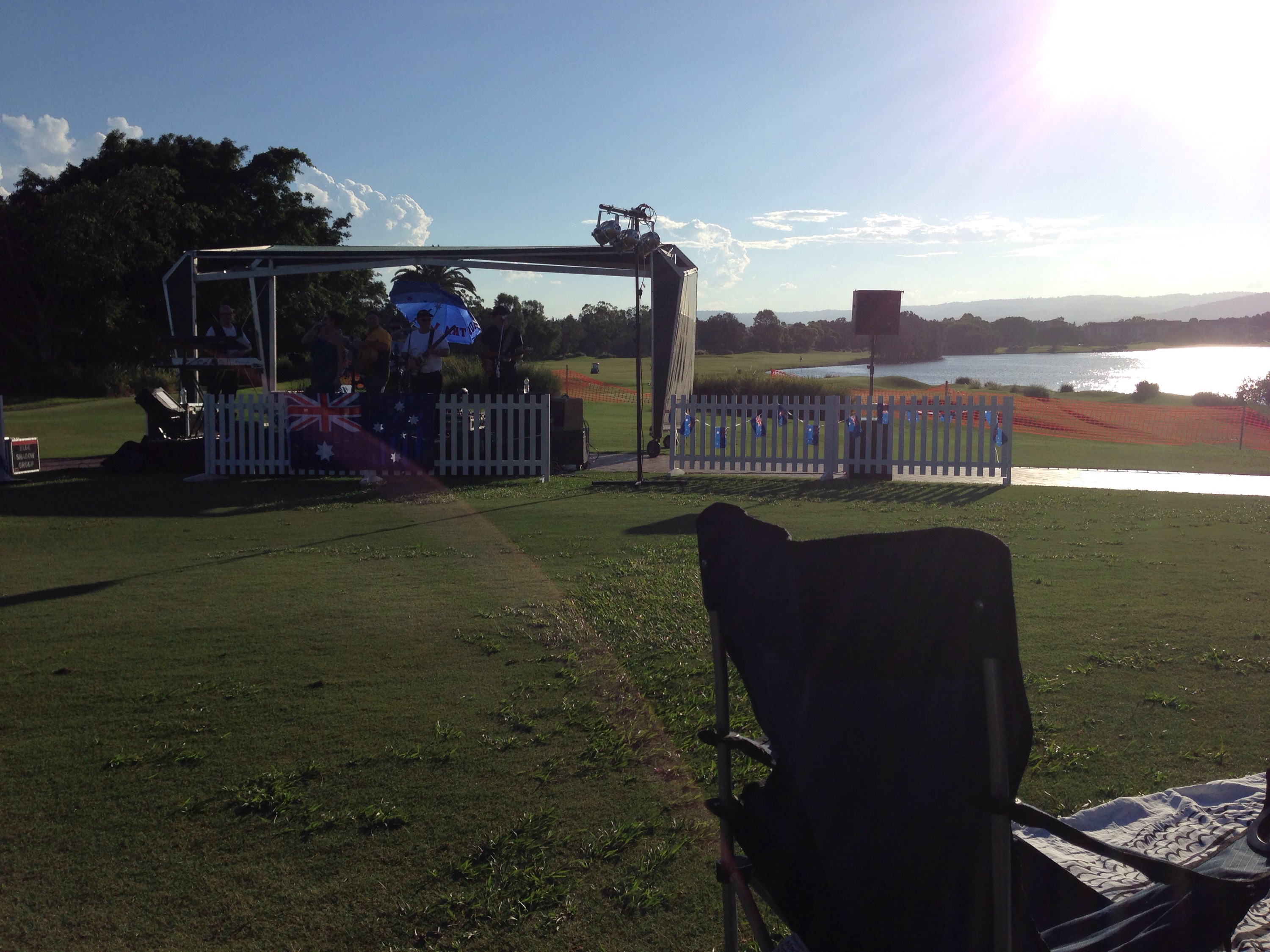 The Links Hope Island golf course had an Australia Day event planned and open to everyone. We met up with the Coen’s and had a great time. It was so hot in the sun, but bearable in the shade. They had a live band, an inflatable water slide, sausage vendors (of course), pick-up cricket and soccer games. There was a great turnout – heaps of buggies overtook the putting green. At one point Jay asked me if I had seen Ty recently. I said, “yeah, he’s over there playing cricket.” Jay said, “ok.” Then he looked at me with a look on his face like “what the heck kind of conversation was that?!? Our son is off playing cricket with some new mates.” We both just laughed. Oh Australia. The atmosphere felt like a wedding – brought back fun memories of Courtney and Jeremy’s wedding. Good times.