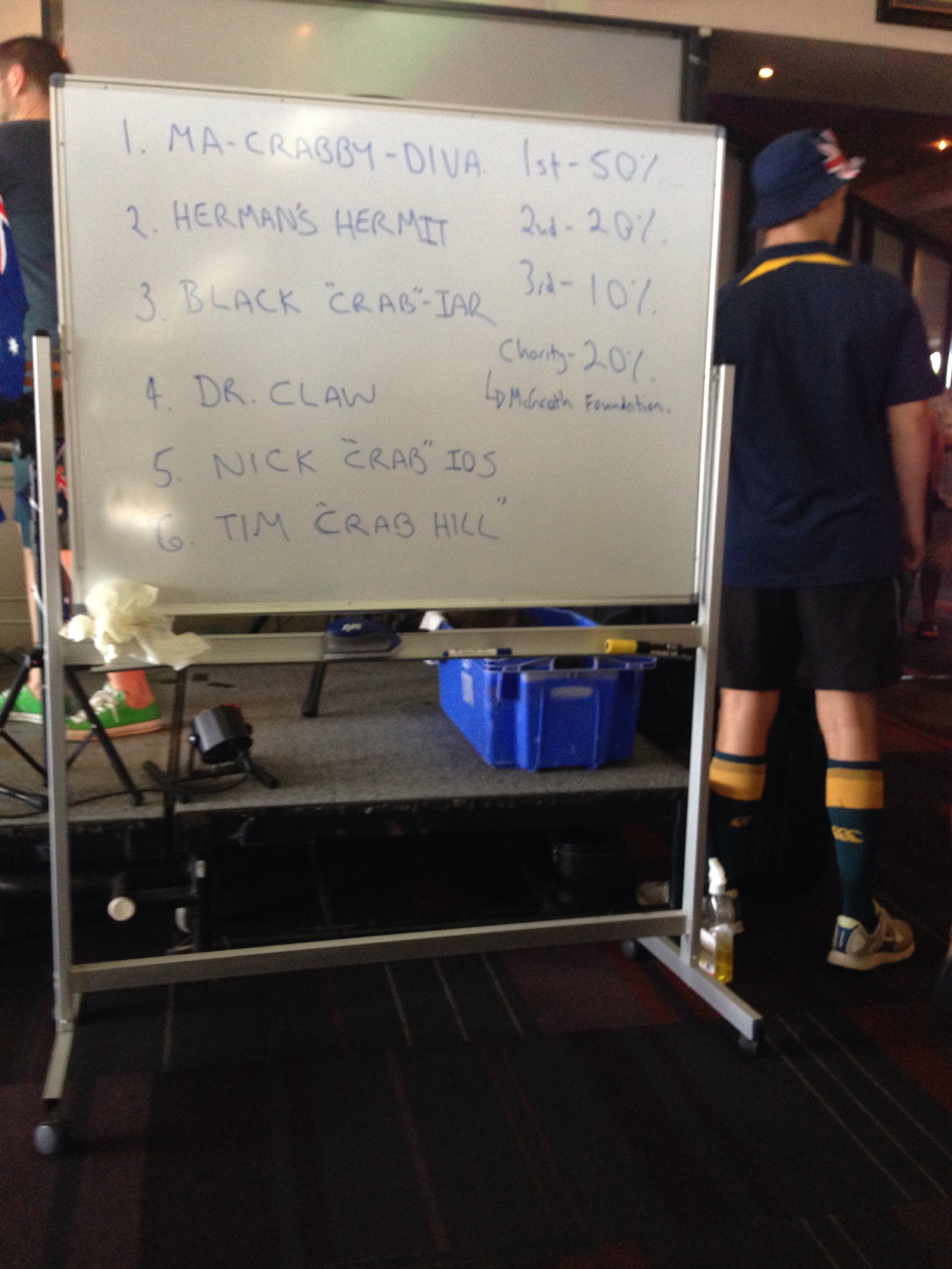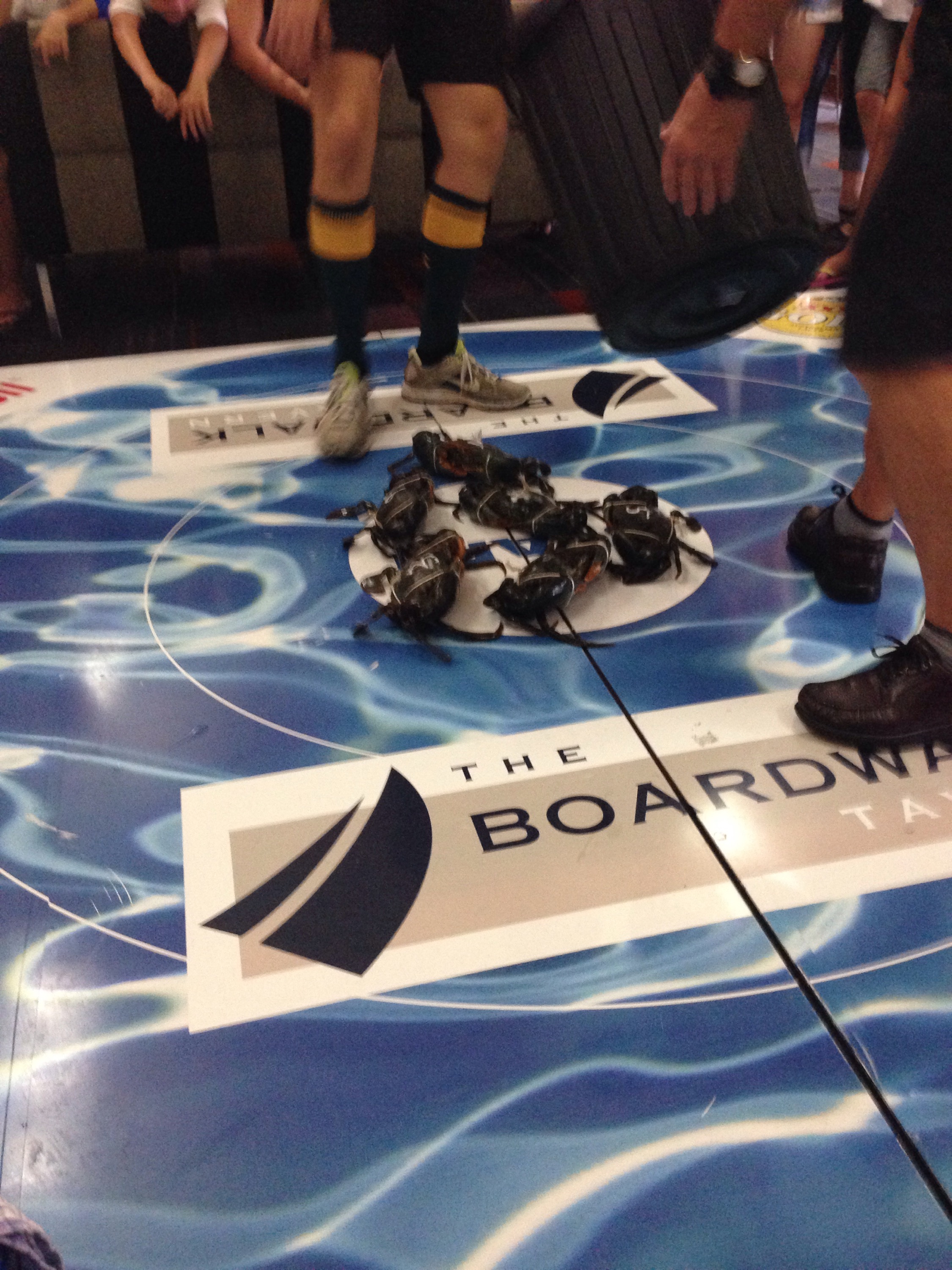 After lunch we went down to the tavern to watch the mud crab races. It was quite an event. We watched 2 heats – 6 crabs per race. They auctioned off the crabs, winner taking 50% of the pot. I couldn’t talk Jay into forking out the $75-$125 bet. It took the guys a while to get the crabs lined up in the center – even with tied up pinchers the guys were extra careful. when they had them all out of the bin and in the center start circle, they put a garbage can on top to hold them in place until the announcer said go. With much to-do, they lifted the can and they were off! Well…technically they were free to run, but apparently cabs don’t do a good job of following the rules. Most of them just stood there and looked crabby. One would go for a few steps, then needed a break, and then another one would make a run at it. The first one to make it out of the circle won. Riveting stuff. As you can tell by the photo, Lily was really into it…. I am glad we got to see it. ๐