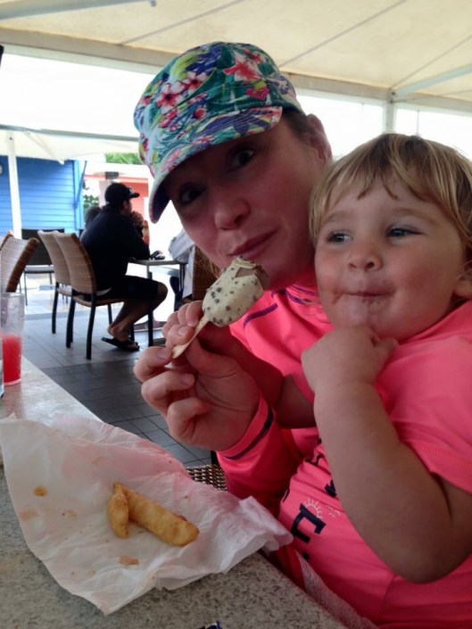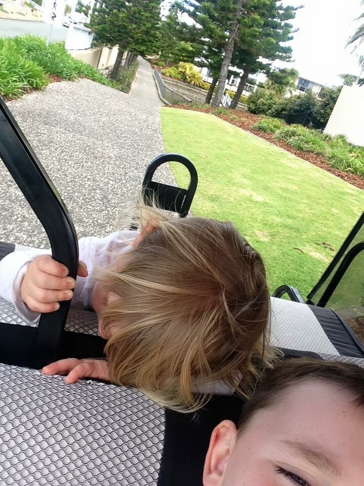 Since we both drank our way through our dinner, we caught a cab home Saturday night and left Brumby in a secure parking garage at Surfers Paradise. It gave us an excuse to go back with the kids on Sunday. We did a little shopping (check out Ty’s crocodile Uggs), ate lunch at Hard Rock, walked through Ripleys Believe it or Not (Ty got a kick out of that), and had a quick play on the beach. The kids and I took a good, much needed, nap when we got home. A great ending to the weekend.