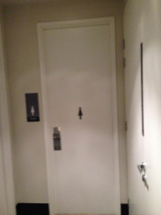 And the award for the most idiotic move of the night goes to the lady that had already had 3 glasses of wine. I was so proud of myself for not stumbling when I walked to the toilets, that I completely misinterpreted the symbol on the bathroom door. I didn’t even see a second door, and my brain obviously didn’t process that the picture on the bathroom door had a triangle with sort of broad shoulders. I walked in and thought, hmm, that’s strange, is that a bidet? And then as I was using the one stall, I realized that holy crap, I’m in the men’s room. I started laughing hysterically. Thank GOD there were no men that came in while I was in there. Humiliated… Serves me right to have that 3rd glass of wine – guess 2 is my limit.