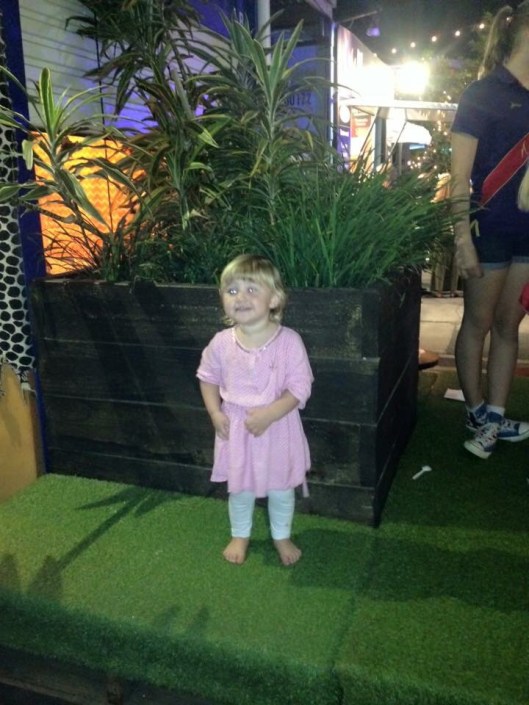 We went somewhere new in Brisbane – the Eat Street Markets. Such a cool place! It is a night market that is made out of heaps of shipping containers. There are more food vendors than I could count that have set up little restaurants in the old shipping containers. The place was packed, full of happy people stuffing their faces with amazing street food. Live bands. Lily dancing the night away. Fireworks. Liquor infused cupcakes. Twirly potato on a stick. Cookie batter funnel cake with ice cream on top. Des Moines needs something like this. Such a fun way to spend a Saturday night with the family!