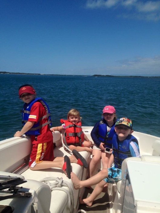 He wasn’t able to pick it up right away, and told us that he didn’t mind if we took it out for another ride. Sunday morning we loaded up, picked up Coen’s, and headed out for one last hurrah! It was an absolutely perfect last day. We popped open a bottle of bubbly (thanks Coen’s!!), floated around, played at Jumpin’ Pin (even Charlie did on his crutches), went for a swim, pumped a few more yabbies, and had lunch at a new fun place – Harrigans Irish Pub. Katie braided Lily’s hair like a princess. One thing I do not regret about this whole adventure was buying the boat. We probably won’t ever have another one (unless we live on the water someday), but in this situation, it was a great decision. I can’t even count the memories we made on that little bow rider. El Bandito…you will be missed.