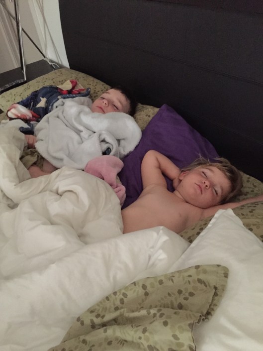 With Jay away, I didn’t put up much of a fight against the kids sleeping in my bed. They always started the night in their own beds, but every night they would sneak in. They are ninjas. I would wake up to find one or two munchkins in my bed. It’s a good thing they are cute.