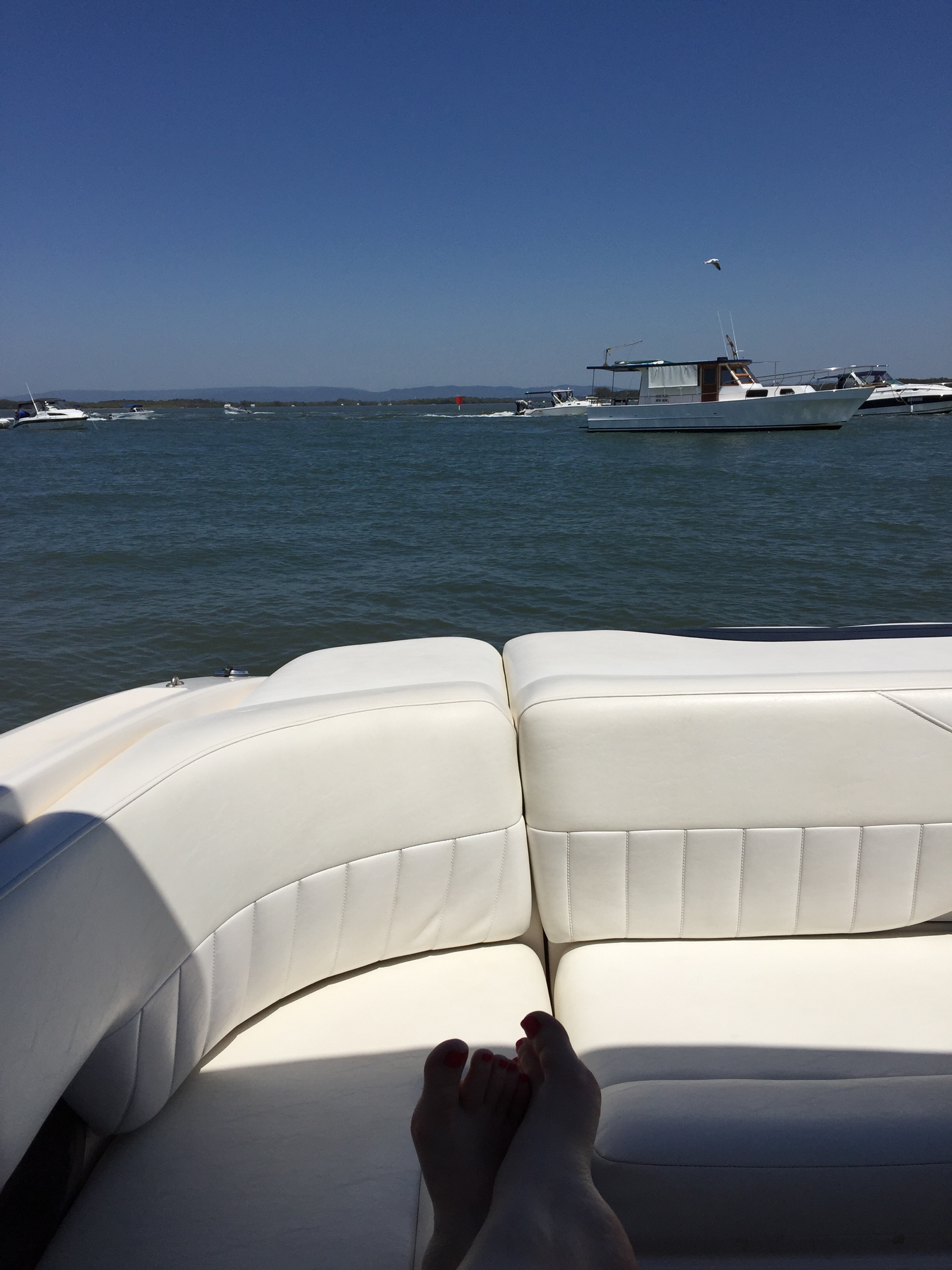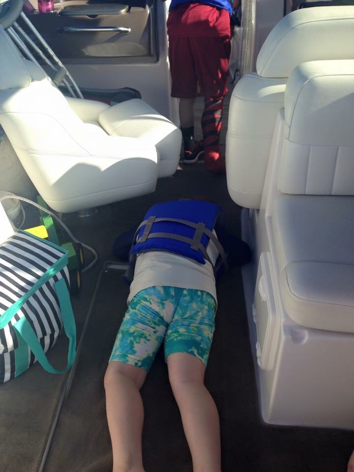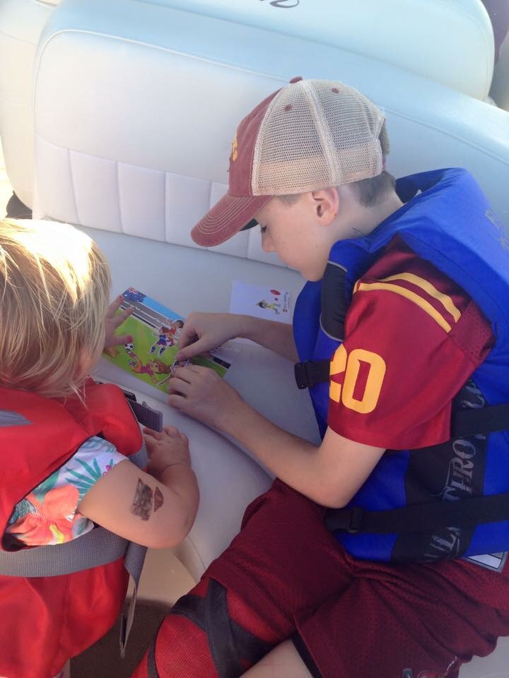 He wasn’t able to pick it up right away, and told us that he didn’t mind if we took it out for another ride. Sunday morning we loaded up, picked up Coen’s, and headed out for one last hurrah! It was an absolutely perfect last day. We popped open a bottle of bubbly (thanks Coen’s!!), floated around, played at Jumpin’ Pin (even Charlie did on his crutches), went for a swim, pumped a few more yabbies, and had lunch at a new fun place – Harrigans Irish Pub. Katie braided Lily’s hair like a princess. One thing I do not regret about this whole adventure was buying the boat. We probably won’t ever have another one (unless we live on the water someday), but in this situation, it was a great decision. I can’t even count the memories we made on that little bow rider. El Bandito…you will be missed.