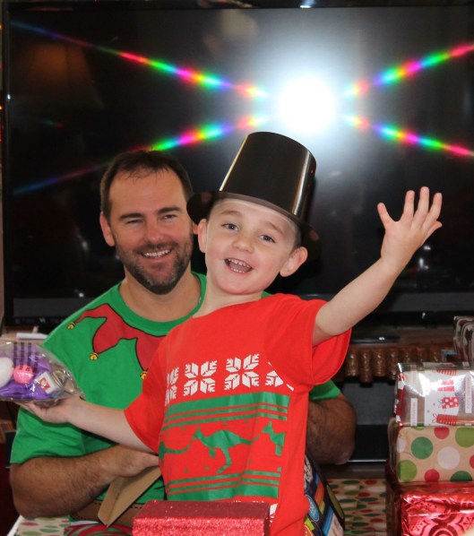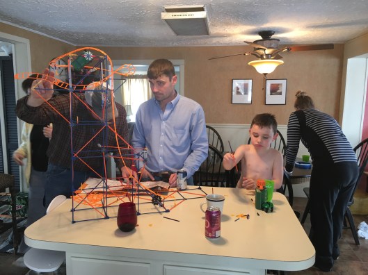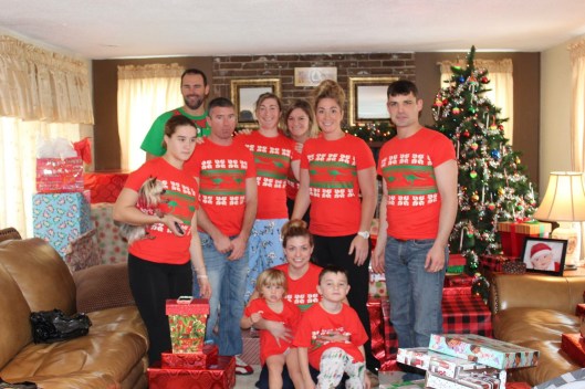 Somehow I was the first one awake on Christmas morning. When the kids FINALLY woke up, we all got lined up in the kitchen, youngest to oldest, and waited for Nana and Papa to let us go into the living room. SANTA CAME!!!! He brought all sorts of awesome things – a zebra buggy, Legos, Octonauts, Star Wars guys, a bicycle, games, books, a gymnastics mat and leotards, and a weight set (for Bri). They must have been really good this year! The kids played with their new toys, we ate breakfast, and waited for everyone else to arrive. Rick and his friend Chris showed up, and then Brooke and Dana made it. Uncle Tom and Aunt Melinda, Ray and Rudy stopped over. It was a packed living room, full of laughter and happiness. Home. It took us a couple hours for everyone to get through opening their gifts. Thanks again to everyone for the great prezzies!!! Once we finished with the presents, we all rushed around to pack up our sleighs so that some of us could head to our next Christmas party. We were heading back to Farragut, this time with the kids.