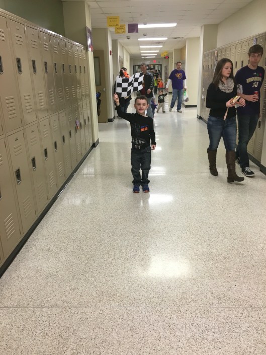 Johnston schools hosted a school carnival. Ty and I decided to volunteer and I think we got assigned to the best game. It was a race car game, where kids could move ahead one step forward if the colored flag that we pulled out of the bucket was one of the colors on their race car. It was a little slow at first, until Ty decided to take matters into his own hands. He went out into the hallway and shouted out “the next race is about to begin! Who wants to come race?!” And then he’d look someone in the eye and ask them if they want to come race. Really hard to say no to that! I was amazed at how outgoing he was – adorable to see. After our shift was over, we got to walk around and play some of the other games. The kids had a great time!