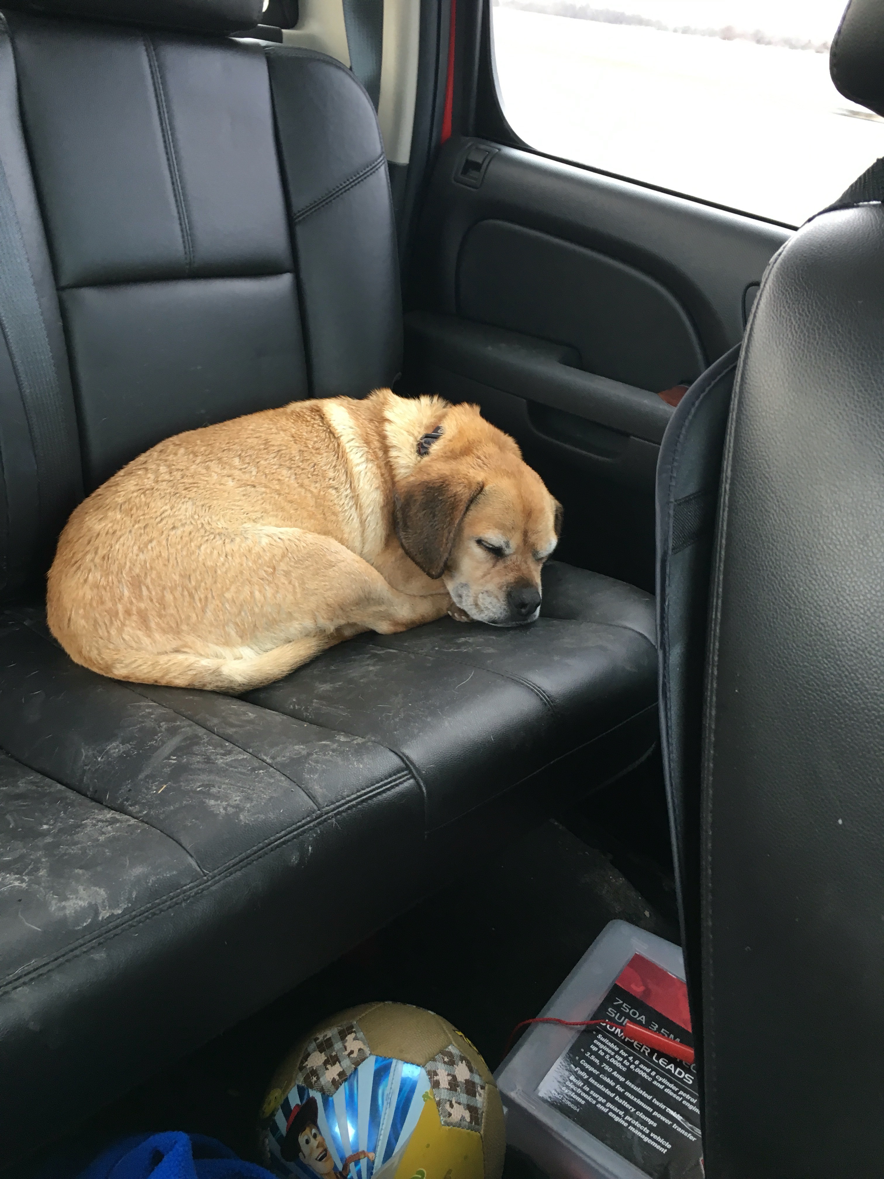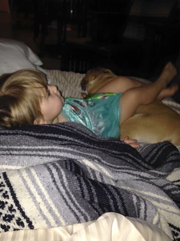 We aren’t allowed to have Bandit stay with us at the rental, but (shhhhh) we snuck him into the dorm room one night while mom was out of town and Steven was working nights. Lily LOVES her Bandito!!!