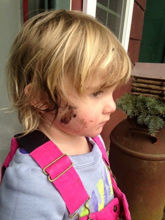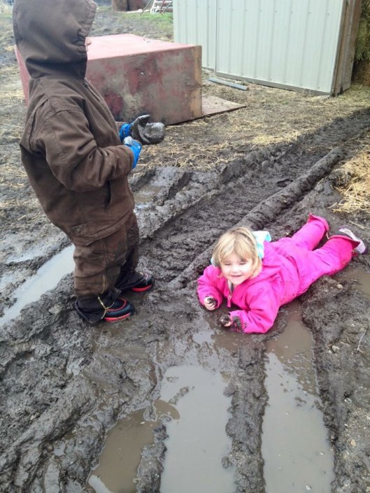On Sunday, Aunt Jekka took the kids to the farm. Lily somehow managed to find a massive mud puddle to fall into. What a mess… At least she was still smiling.