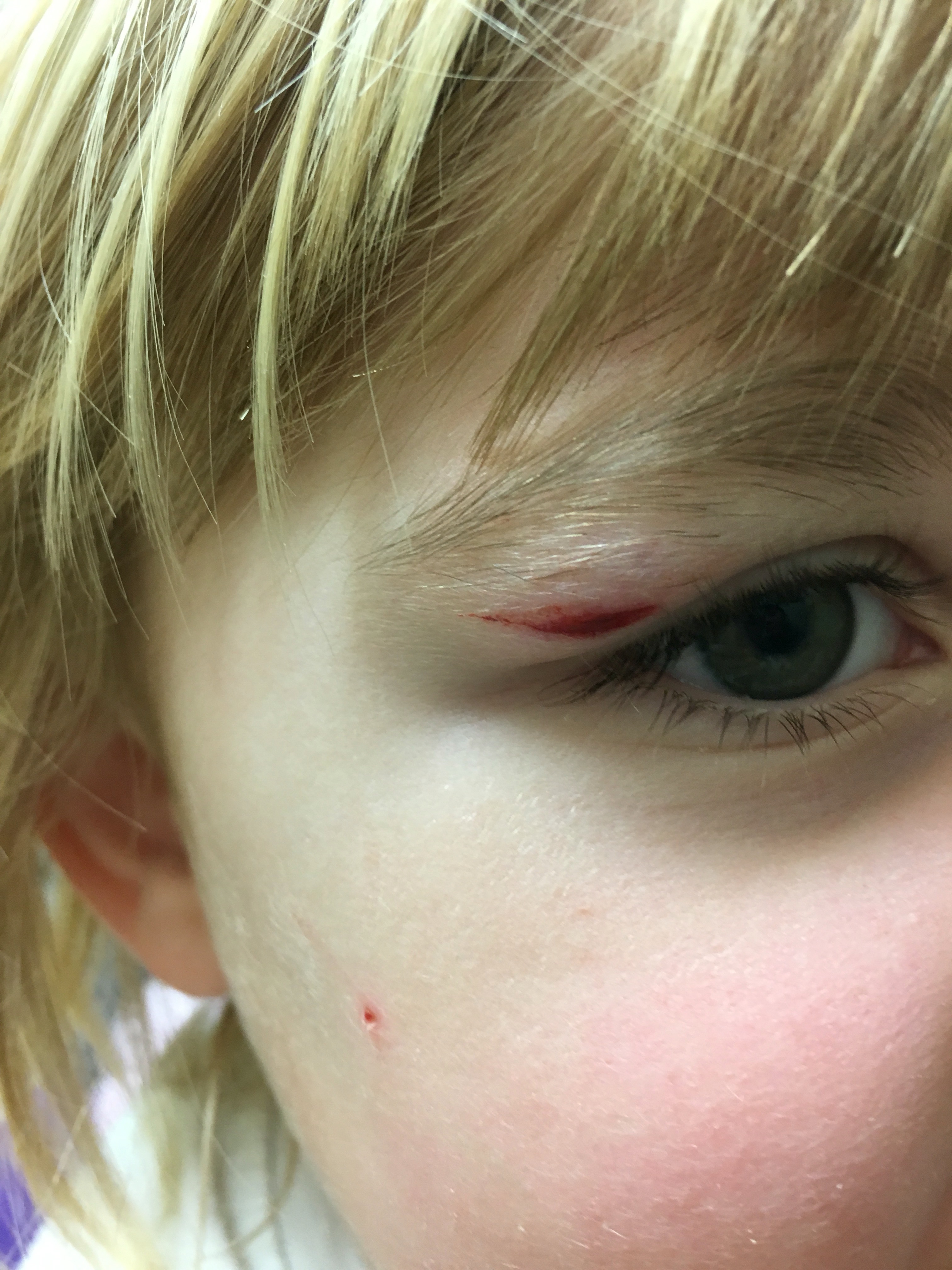 And then lily decided it was her turn for an emergency trip to the doctor. She was doing gymnastics and fell on the corner of a wood ottoman. Split her eye open, so we took her to urgent care and got the would glued together. She is a tough little thing.