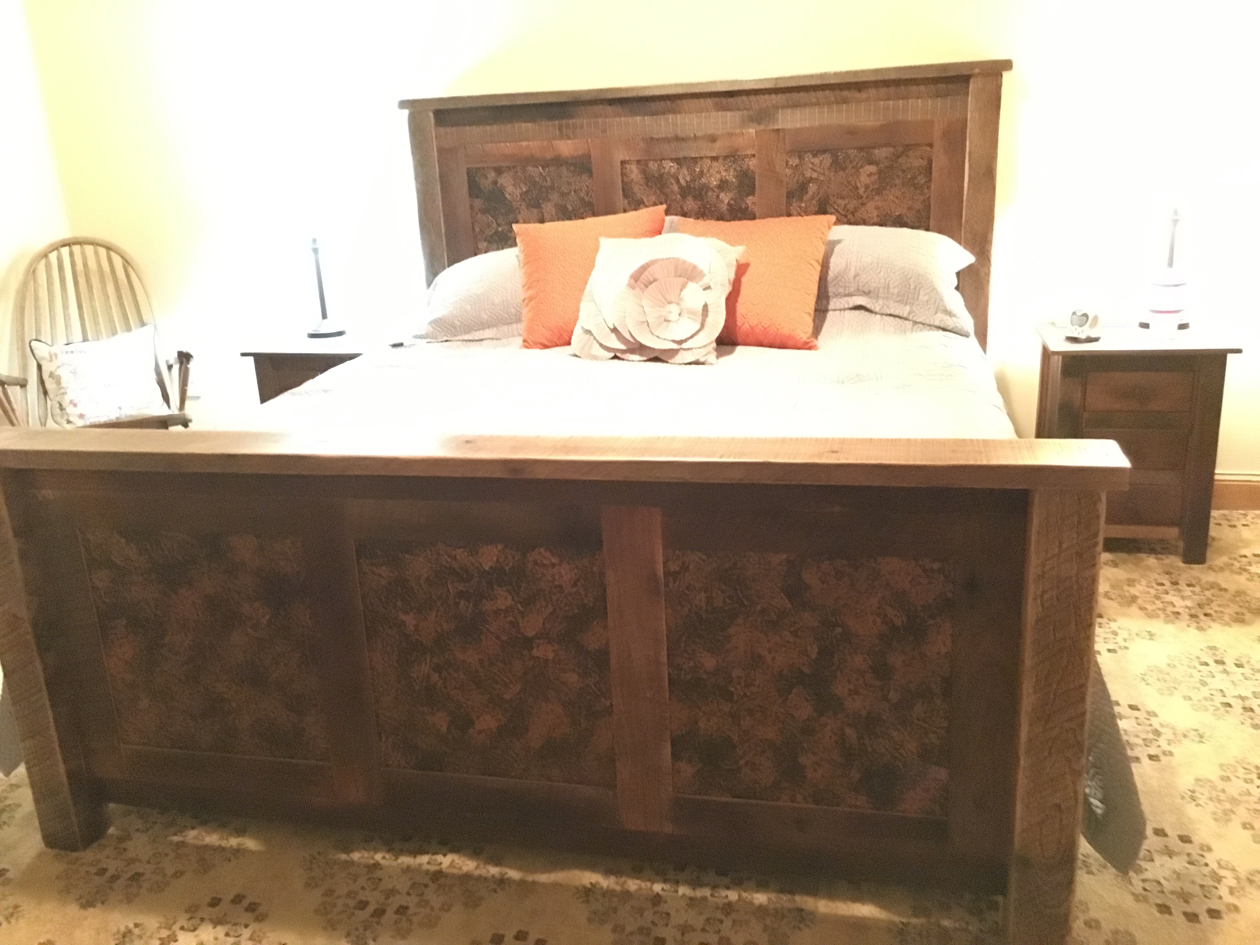 Our new bedroom furniture arrived!! 750 pounds of reclaimed Barnwood and copper was sitting by our front door. Our awesome neighbor, Michael, was enjoying a beautiful evening playing basketball with his kids, but he paused his game to come help us move the furniture inside. I love love love the new set!! It is from Fireside Lodge – beautiful and excellent quality.