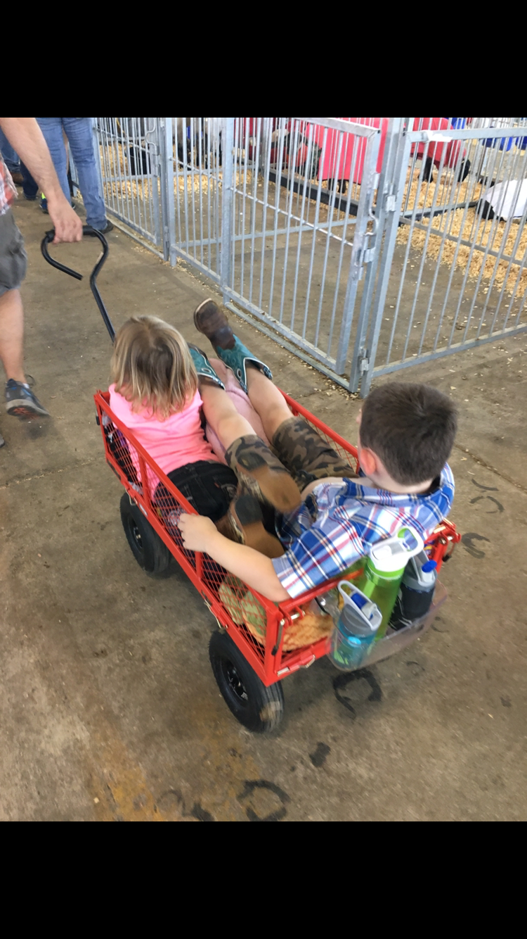The kids got to spend most of a week helping cousin Bri at the Polk County Fair. Ty got to show a lamb and a bottle calf. Both kids loved the time spent in the barn, making friends, learning about livestock care, and having good clean (well actually filthy dirty) fun. And bonus!! At the fair, Auntie Em reconnected with an old friend, Ben. He’s a keeper. 😉