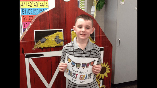 Ty started 1st grade at a new school – Horizon Elementary. His amazing teacher is Mrs. Heikes, and he loves school. This year he is riding the school bus for the first time. Handling it like an old pro!