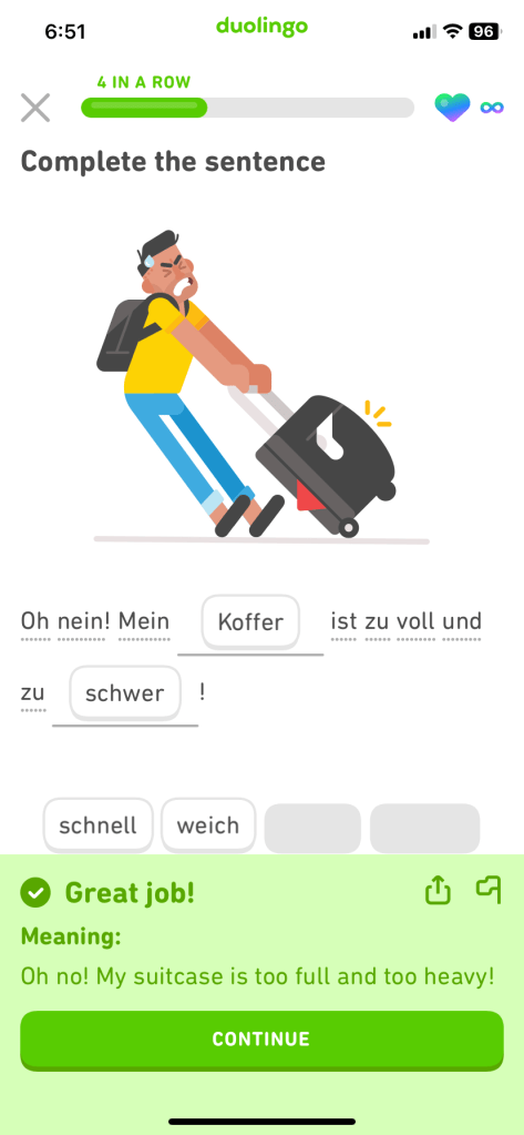 We landed at 5:30 AM on Friday and had a jam packed first day. We had a combination of rental furniture and stuff that we bought from a departing expat already in the house, so we started the day by organizing and unpacking. Ty and I walked down to the pharmacy – Apotheke – to get a few staples, body wash and hand soap. We stopped at the bakery – die Bäckerei – and bought a few yummy items. The croissants literally melt in your mouth.