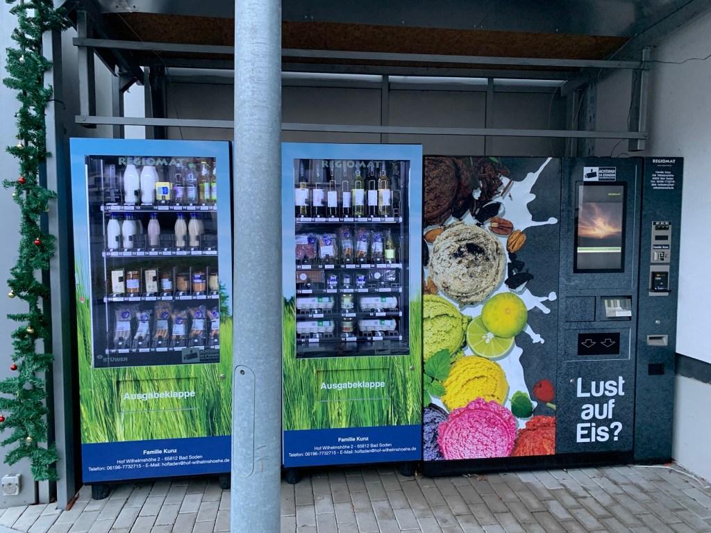 When we got home, Jay and I took Kaycee for a nice long walk, exploring the adorable little town that we get to call home for the next couple of years. I found a few options for hair salons, a Thai massage place, a hospital, a dog groomer, lots of doctors that may or may not speak English, a massive privately owned villa, and a vending machine that sells milk, eggs, sausage, chocolate, wine – you know, all the staples for Sundays and holidays when the shops are all closed. Of course (natürlich) we bought some milk (milch) and chocolate (Schokolade) because we could. 🙂