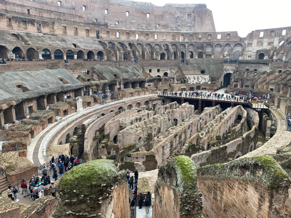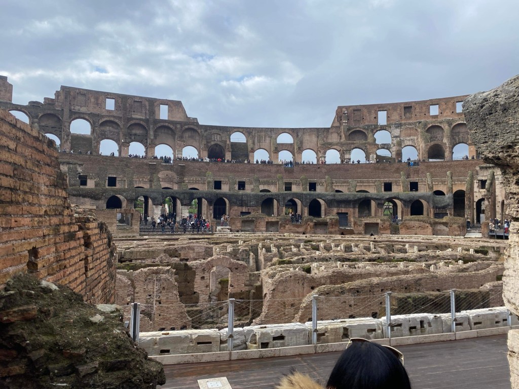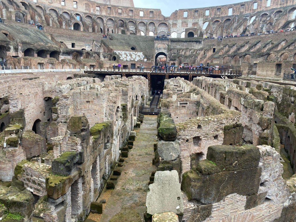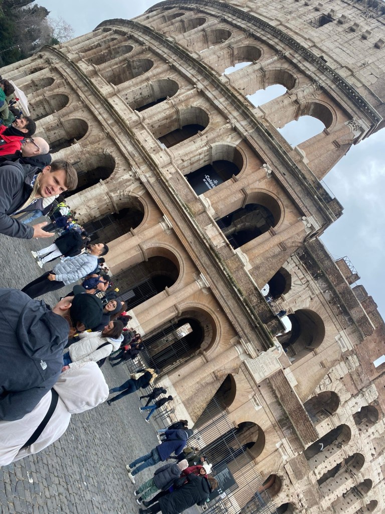 The building that we all know as the “Colosseum” was built on the site that was originally the estate of the Emperor Nero. He had a giant bronze statue made of himself (he wasn’t exactly a humble leader). After Nero’s reign (life) ended, the Colossus statue was moved outside the Flavian Amphitheater. People referred to the statue as a meeting point, and over time, the amphitheater sort of adopted the name “Colosseum”. Kind of cool that we spent Super Bowl Sunday touring a giant stadium.
