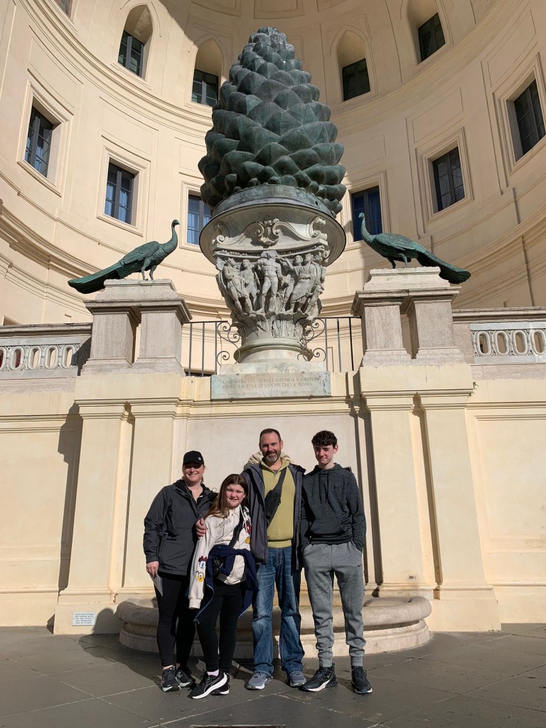 Monday morning we had a tour scheduled for 9:30 at The Vatican. Despite Jay and Ty getting less sleep than normal because of the Super Bowl, we made it to our meeting point just in time. We met our guide (another one from The Tour Guy whose name I don’t recall) and immediately skipped the massive lines and got right inside. (Worth the cost, for sure). We started outside and saw a bit of the gardens and talked about what we were doing to see inside. Then we toured the museum, making our way through the Raphael Rooms and the Sistine Chapel, ending at St Peter’s Basilica. Here is our day, in photos.