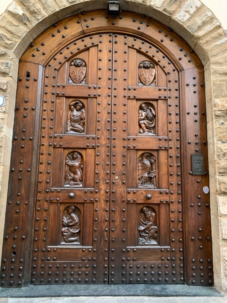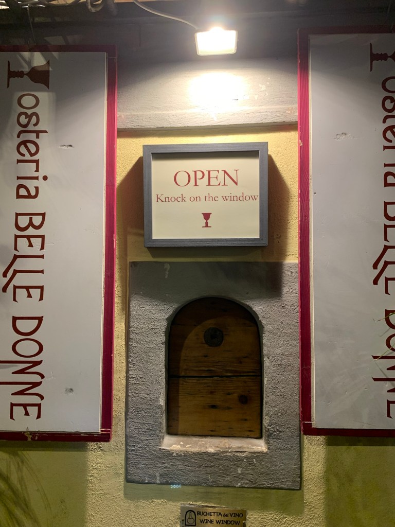 These cute little doors are maybe a foot tall. We have seen a couple throughout Florence. This one said to knock, so I did. A waitress took my wine order. Jay and I sipped a glass of delicious wine in an alley in Florence.