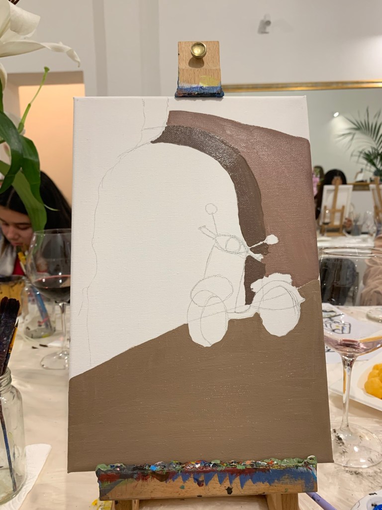 Lily and I decided to make a reservation for a Paint & Sip experience (more painting than sipping for her). The group chose to have the instructor walk us through a Vespa painting. Lily really wanted to do the beach painting, so she, being a professional artist, painted on her own and helped me. It was a fun couple hours of girl time.