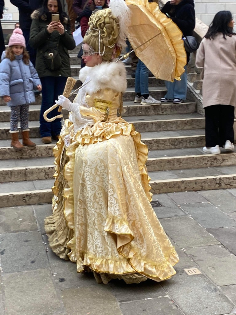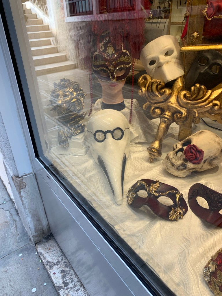 All of the little alleys have shops. The Murano glass shops are all amazing. And the Carnival masks….incredible. When I booked this trip I didn’t realize that Carnival here was such a big deal. If I had, I would have flipped the trip and gone to Venice first. There are remnants of the party everywhere – confetti on the ground, decorations being taken down. And this lady.