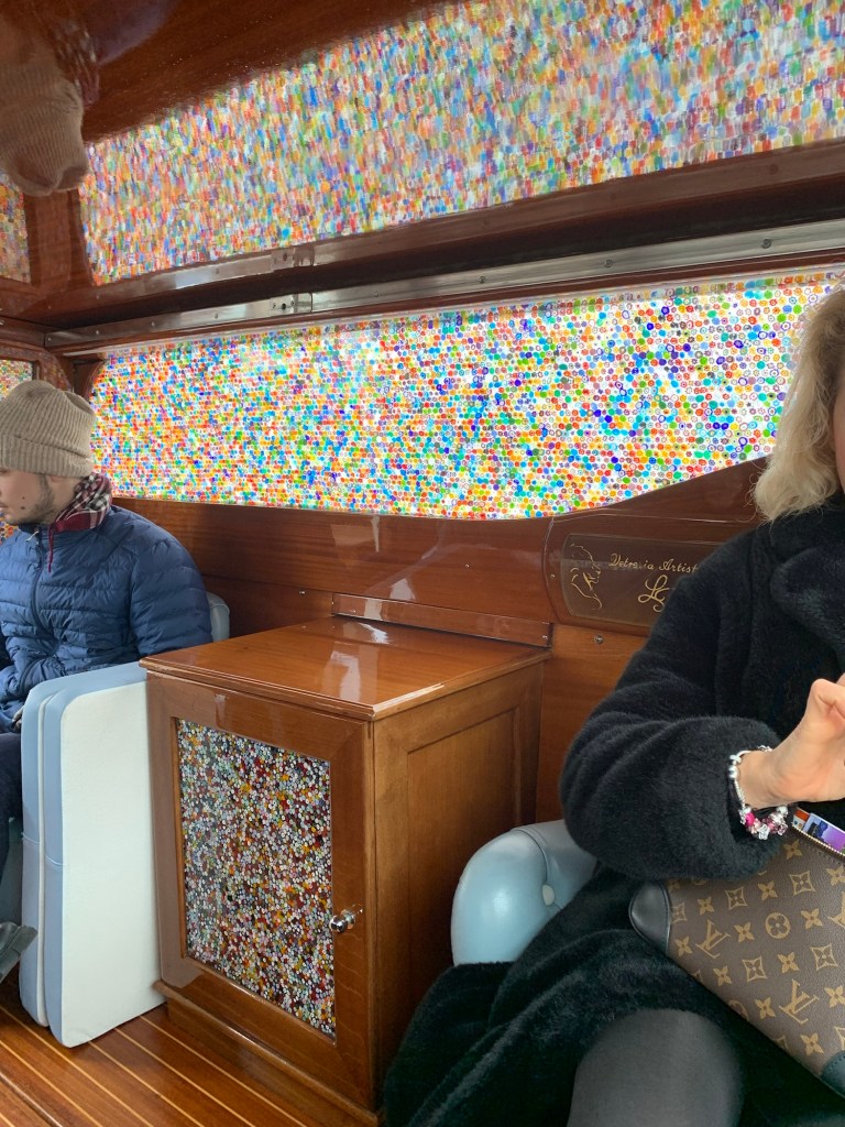Romy arranged for a private water taxi to take us out to Murano and Burano islands for the day. However, the fog was too thick for him to feel comfortable going all the way to Burano. We will have to do that island next time – known for colorful homes and lace making. Murano is the home of Venetian glass blowing factories – moved to an island due to the fire risk the factories created. It was incredible. We hopped off the water taxi at LP Glass Factory. The maestro demonstrated first how to make a simple vase. Then he started a second piece of glass. He magically transformed a ball of hot glass into a beautiful horse. We were all in awe! There are no female maestros in Murano. Who will be the first?This is the one that got away. I loved this unique piece of art, but I couldn’t make that large of a purchase as an impulse buy. Dang accountant brain kicked in. Maybe next time it will still be there waiting for me. We did pick up a few (much less expensive) souvenirs, but they are all wrapped up so I don’t have a photo.We got to ride back to Venice island in the factory boat. Look at the glass!