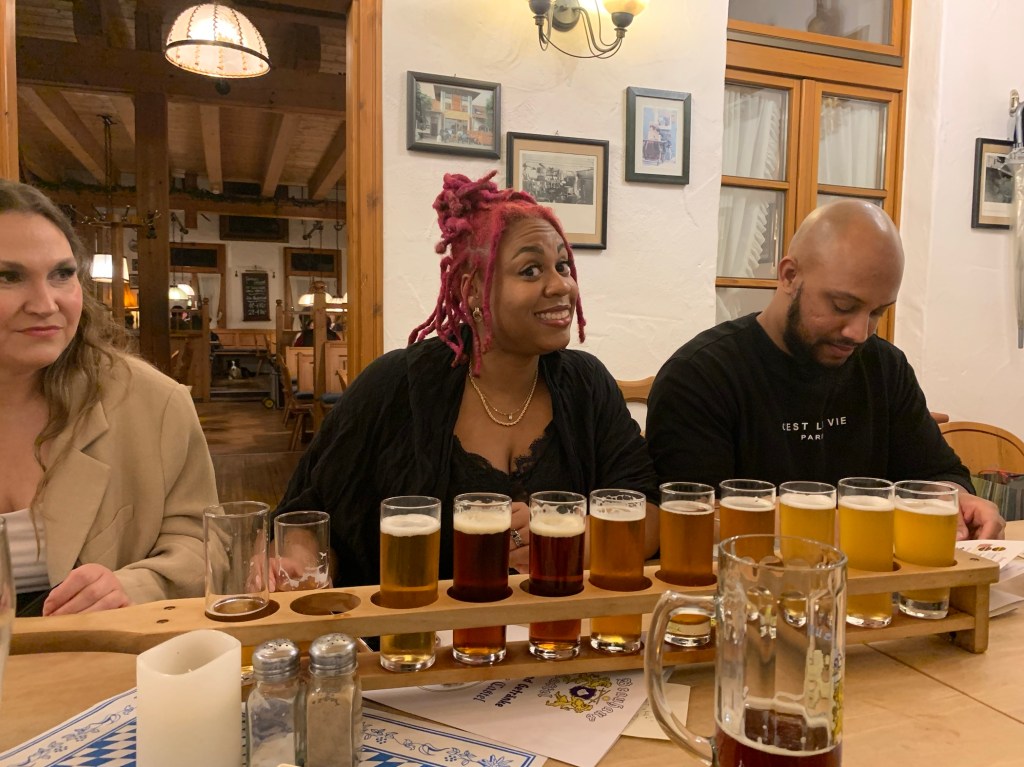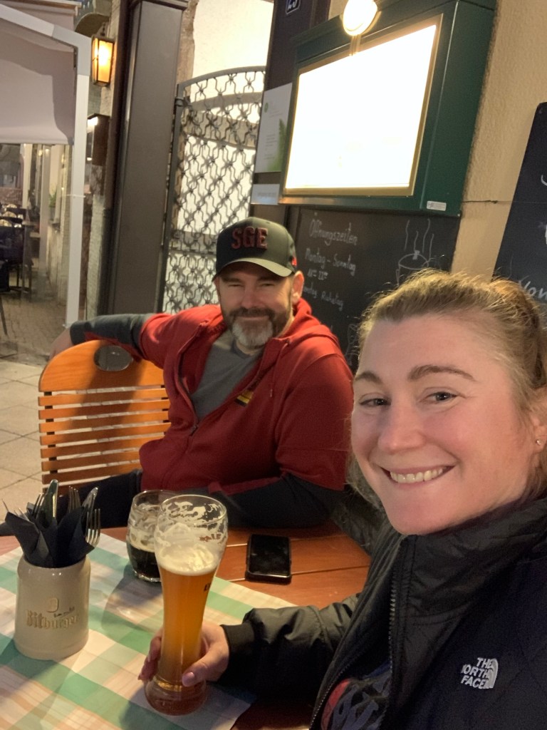 We met for dinner at 8:00 PM (my bedtime) at Brauhaus Castel in Wiesbaden. Schnitzel and beer was consumed. Lots of beer. Lots of laughs. It was a great way to start the evening.