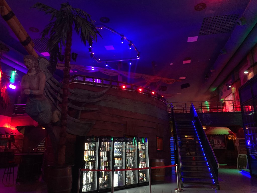 There was a legit pirate ship in one of the rooms. Dancefloor was up on the deck. The place looks empty, and it was definitely not very crowded from 9-12. Jay and I left at midnight and apparently it got busy after we left. The club stays open until 6:00 AM. WHAT?!?! I am LONG past the age of being able to stay up that late. Wait a second. I have never been able to stay up that late. Shots!!! Fire!!!We might be old, but we’ve still got moves.