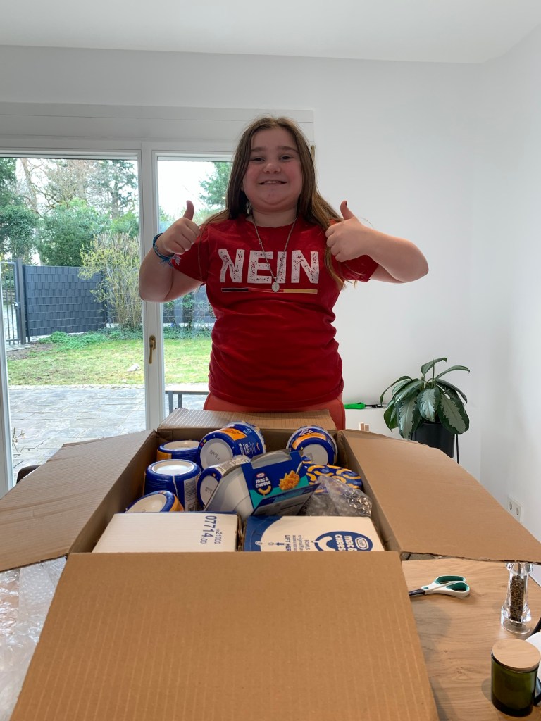 #2. Uncle Brian came through with Lily’s search for someone at Kraft Mac & Cheese. Her persuasive letter (and dramatic reading of it) resulted in a giant box of Mac and Cheese being delivered to Königstein. This girl’s day/week/month/year was MADE!!!