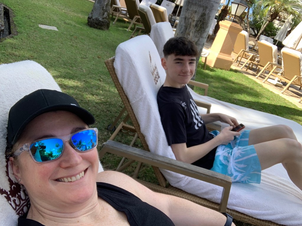 The first full day was spent at the resort. It was warm (~70 degrees Fahrenheit) but the breeze is a little chilly, so the chances of me getting in the water are slim. Lily and Jay did a little swimming. Ty and I just chilled poolside.