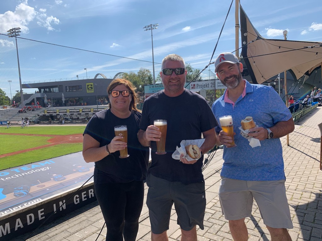 Lily’s soccer team won their first match! Lily has been practicing with team but wanted to sit the first one out to decide if she wants to play in a match. She said “MAYBE I could play….” Fingers crossed! This is a year of trying new things, even if it is a little uncomfortable.Look who is in Germany!!!! After 9 months, our first guests landed. Jess and Jason only had time for a quick shower after their flight before getting in the car to head to Regensburg, Germany for Ty’s 19U Deutschemeister (German National Championship). The stadium was amazing. Of course they served beer and brats at the concession stand – a perfect German lunch.Batter up!Should have packed the bag chairs…. Our butts survived 3 games sitting on concrete. :). The boys lost their first 3 games then won a nail biter for the 7th place finish.