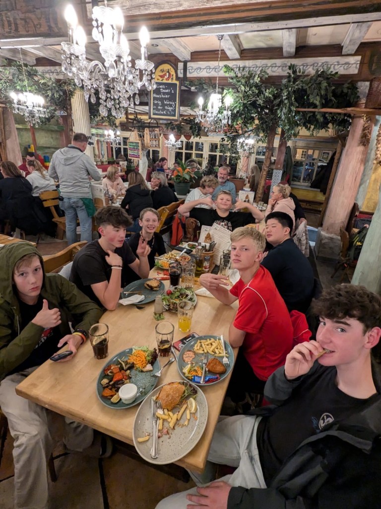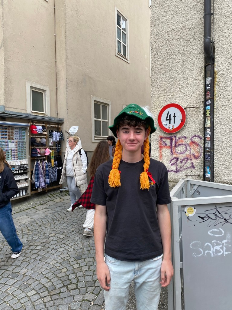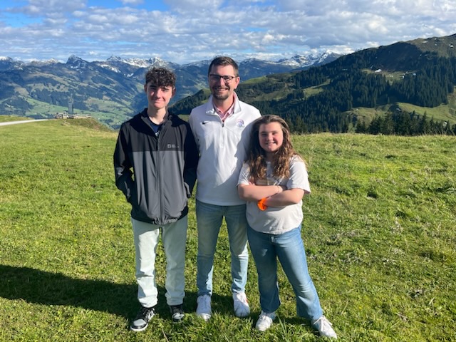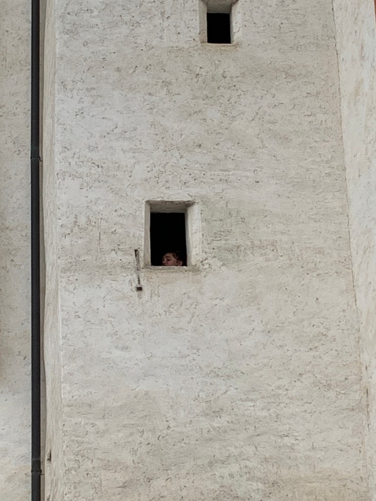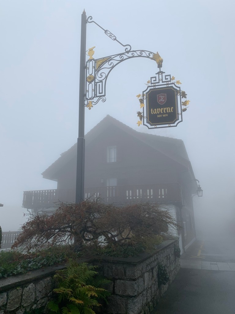 Saturday morning Jay picked up Ty from the hotel where the rugby boys were staying at. The dense fog was still hanging around, but we were hopeful that it would disappear. We took Kaycee for a hike around the resort and checked out everything. It was kind of every with such a thick fog, but peaceful in that we could hear the Swiss cowbells jingling off in the distance. Along the way, Ty expressed extreme annoyance that he is not able to whistle. Jay explained his way. I explained my way. Neither was successful.