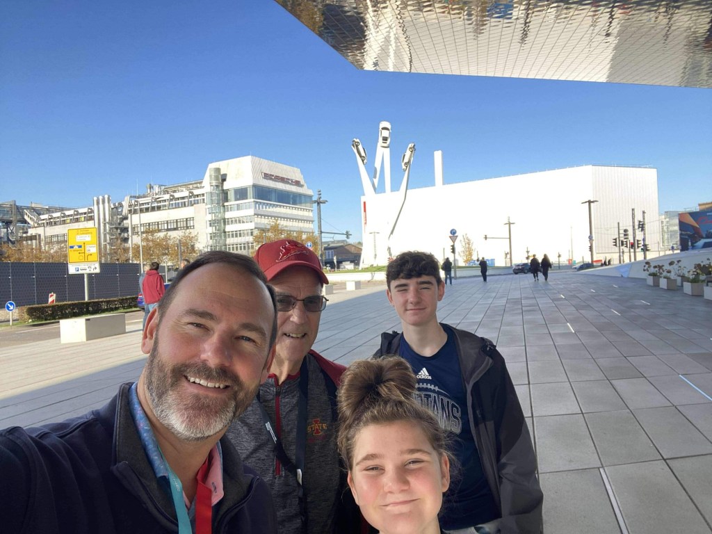 We had dinner reservations at Le Sens Unique on Friday night. One of the specials was Parmentier de Canard. It is kind of like a shepherds pie with duck confit at the base. I thought I would give it a try, and oh man, it was SO GOOD!!!We stayed at the Marriott Champs Élysée, a perfect location for our primary activity – SHOPPING!!! The Arc de Triomphe is a must-do selfie spot.Kirk, Jay, and the kids went to Stuttgart on Saturday to check out the Porsche museum. Jay’s souvenir is built, but it wasn’t in Stuttgart yet so they didn’t get to set eyes on his new ride. Soon!!!Sunday morning we woke up early and walked slowly through the quiet city towards the Eiffel Towel. I wish I had my video camera rolling when Sherry FINALLY saw the tower. She was like a kid at Christmas. It is kind of surprising that you can’t see it from everywhere in Paris. I built up the suspense for 2 whole days. Her reaction was worth the wait.We ate breakfast at a sidewalk cafe where you could see just a little bit of the top of the tower, then made our way to the entrance for our 9:30 tour. Pro tip. Book the first tour time of the day. Get there a little early. Find an English speaking tour group to stand next to. :). We were in one of the first elevators and didn’t have to wait long at all.We had some time after the Tower so we hopped on the subway and went to see Notre Dame. It is still closed for renovations but is getting closer!