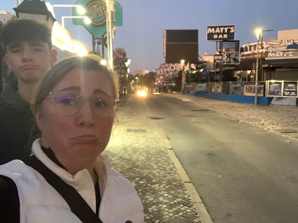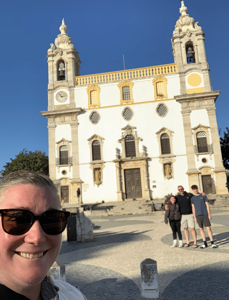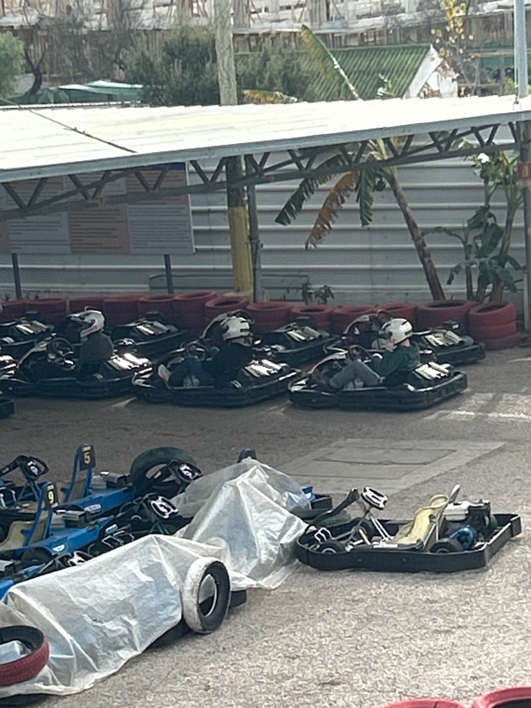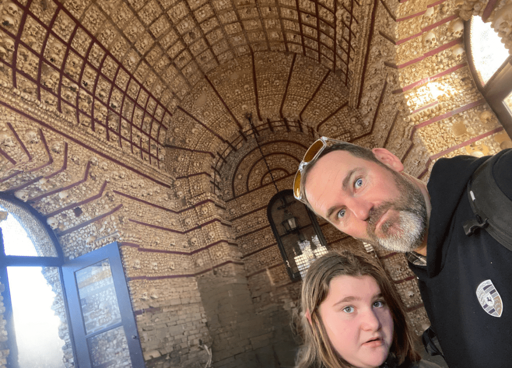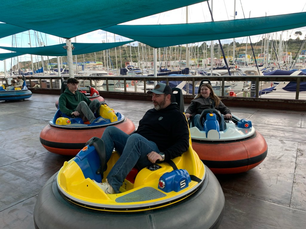 We drove to a coastal town, Faro, to explore a bit.There was a massive wall built around the city. The main tourist draw in the town is this unassuming church, Nossa Senhora do Carmo.It is like many old European churches – will I be struck down by lightning if I describe it as a bit gaudy?But then you wander out back to find a very small old cemetery and a little chapel – Capela dos Ossos. This is NOT like every other European church.Um….look closely. You are seeing what you think you are seeing. They ran out of space in the cemetery so they exhumed the bones of over 1200 bodies and covered the walls of the chapel. Never seen anything like it – never want to see it again.Jay was feeling the need for speed after being away from the autobahn for so long, so he and Ty found a couple go-kart tracks. Meanwhile, I had one of the best massages of my life at the hotel – Ricardo gets a 5+ star review from me!Perhaps Jay should have contemplated a career as a race car driver. Poor Ty spent the day inhaling Jay’s exhaust.But Ty got revenge by slamming into Jay’s broken bumper car over and over again. Lily got some good belly laughs in.We ended 2024 with a little sunset exploration of the coastline by our hotel. I love the rocky, shell-covered, cracked cliffs, watching the waves crash into them. We got all dressed up for New Year’s Eve and I didn’t take a family photo. After talking about dancing until 6:00 AM, Lily couldn’t make it to midnight. But I had a pretty amazing fireworks show from our hotel balcony. This picture doesn’t really show it great, but I could see at least 10 different fireworks displays.We drove into Albufeira on our last night in Portugal, January 1. While I am sure that the night before (and all summer long) the Strip was a hoppin’ place, it was pretty quiet. We had to use our imagination about what the atmosphere is normally like.