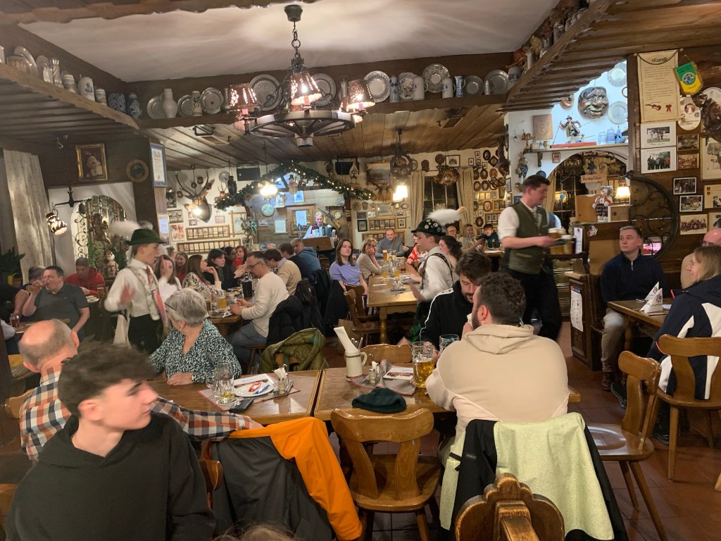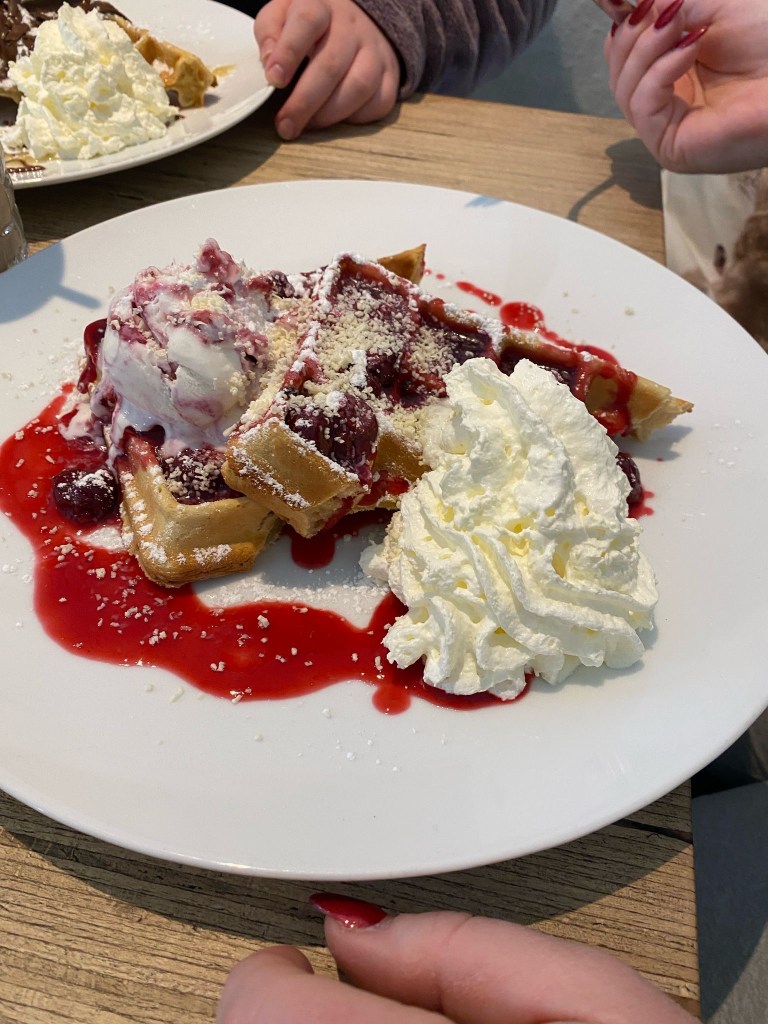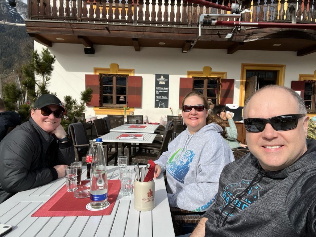 When we got home from Brussels, Jay and Ty joined the Glace’s and Ted for a Frankfurt Eintracht football (soccer) game.It is Fasching time in Germany. It is celebrated during Carnival and while it has roots as a religious event before Lent, an outsider’s perspective is that it seems to be more around getting dressed up and going to parties. It’s like a multi-day Halloween party.Garmisch. Gorgeous.We are staying at an Air BNB called Chalet Alpspitz. It is beautiful, and I love listening to the mountain stream in the backyard.Dinner on night 1 was at Hotel & Gasthof Fraundorfer. Entertainment was provided by a live accordion player and 2 adorable boys dancing in a traditional style in their liederhosen. Classic Bavaria. The food was delicious.On Sunday we headed up the mountain to the Zugspitze and the highest point in Germany. We took a cogwheel train up the mountain. It was Kaycee’s first train ride. The first hour was fine, and then we entered a tunnel for 20 minutes of darkness. I did not love that part of the trip. It took me about 15 minutes to recover when we arrived at the top. Felt a little nauseous and claustrophobic.The train was really climbing. The kids had fun playing with gravity.We rented a few sleds and sent the kids (and Paul) on a loooooong hike to the top of the sledding hill. You can easily see Jay in this picture. Can anyone see Paul and Lily? If anyone from the top of the mountain reads this blog, PLEASE for the love of God put in a lift. The kids only went down the hill twice because they were so exhausted. The only reason why they went twice instead of once is because it was super intense. I will post the sledtastrophe video on Facebook.So this place was seriously cool (no pun intended). Iglu Dorf. This is a giant snow fort that has a bar and several hotel rooms ALL MADE OUT OF SNOW!! The next group of photos are from inside. Absolutely incredible carvings. In the spring it all melts away. Next winter they will spend 5-6 weeks building a new one. Sip on a glass of wine, take in the view, and watch the skiers zoom past? Not a bad way to spend a Sunday.We took a short ride on a gondola (Kaycee’s first) to get to the highest point in Germany. The clouds were rolling in so we didn’t get the full experience but it was still neat to be above the clouds.The highest point in Germany (and apparently the highest hat in Germany also).Glace’s (minus 1)We crossed a bridge into Austria before heading down the mountain. This time we took a gondola (somehow I didn’t get any photos).From the gondola stop we switched back to a train. The skiers stopped at Hausberg to get fitted for their ski equipment and finalize ski plans for the week.Dinner on Sunday night was at Seehaus Restaurant & Cafe. There is a lake next to the restaurant but it was dark out so we couldn’t see it. Wah wah. The food was delicious.On Monday Jay and the kids had a lesson with Olivia. There is a US military base in the area, and a resort for military families. The Hausberg ski school and equipment rental is employed by Americans. It was so nice to not have to worry about anything getting lost in translation. While half the group was on the mountain, Jessica, Paul and I explored the town. First stop was Edelweiss Resort which is only accessible to US military families and their guests.Wandering through townOk. So these wooden benches with Bavarian people painted on the ends are SO COOL. I feel like I need one in my life. There are several sprinkled around the town.We ate lunch at Mohrenplatz. Outside. In the sun. It was 50 degrees Fahrenheit!! My Treasury eye couldn’t help but notice the world’s most beautiful Commerzbank building.I love the architecture in the area. Many of the buildings/homes have intricate paintings on the outside. Jessica and Paul headed back home, so Kaycee and I walked to the lodge to meet the skiers. They all had a great time (and were exhausted)!Tuesday morning we dropped Ty and Cam off at the lift and went to Wafflehaus. Important note: this is NOT part of the Waffle House chain in the US. Jay has a weird love of the US WH, so he will not be happy with me saying this, but this Wafflehaus was so much better than USWH. I mean, not even comparable.I believe I ate this hot cherry Belgian waffle with ice cream in record timeWhy wouldn’t you put schnitzel on your breakfast sandwich?Ty and Cam found some friends from school!Warning. The next section is mildly inappropriate but I feel like I need to include a record of this observation. I am somewhat immature and enjoy bathroom humor. This sign made me chuckle. Translation is bath alley but I only see Bad Gas.This is the best “toilets are this way” signEnter a stall and enjoy the artworkWell hello thereI almost didn’t post this one, but come on. How could I not? I was cracking up in the bathroom. For the guys reading this, most women’s bathrooms do not have this kind of decor. Note that these are 3 different public stalls, at 3 different locations. It’s a thing here. 🙂