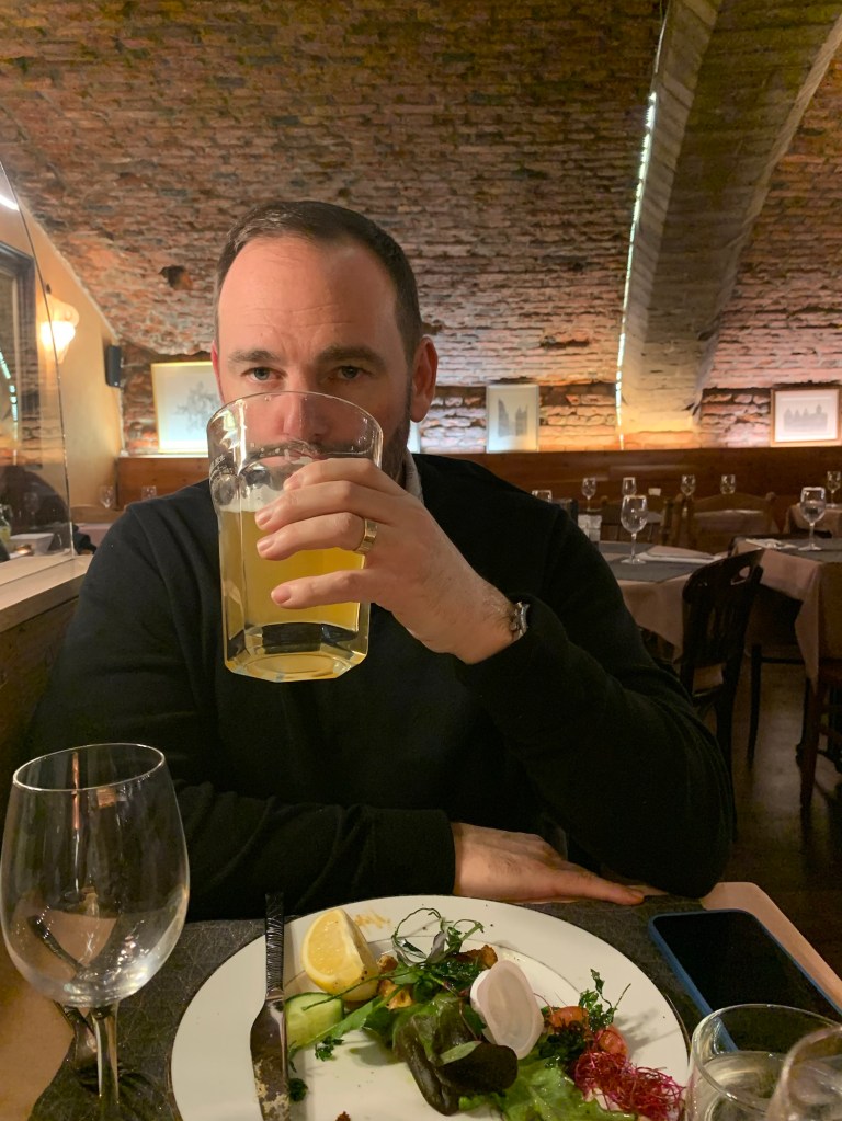 The Grand Place was gorgeous! It is a huge square with beautiful buildings accented in gold.We had dinner at Cave Du Roy – a random The Fork find. It was delicious! These Belgians really love their beer. This is a small (j/k). I had to use 2 hands to pick it up.