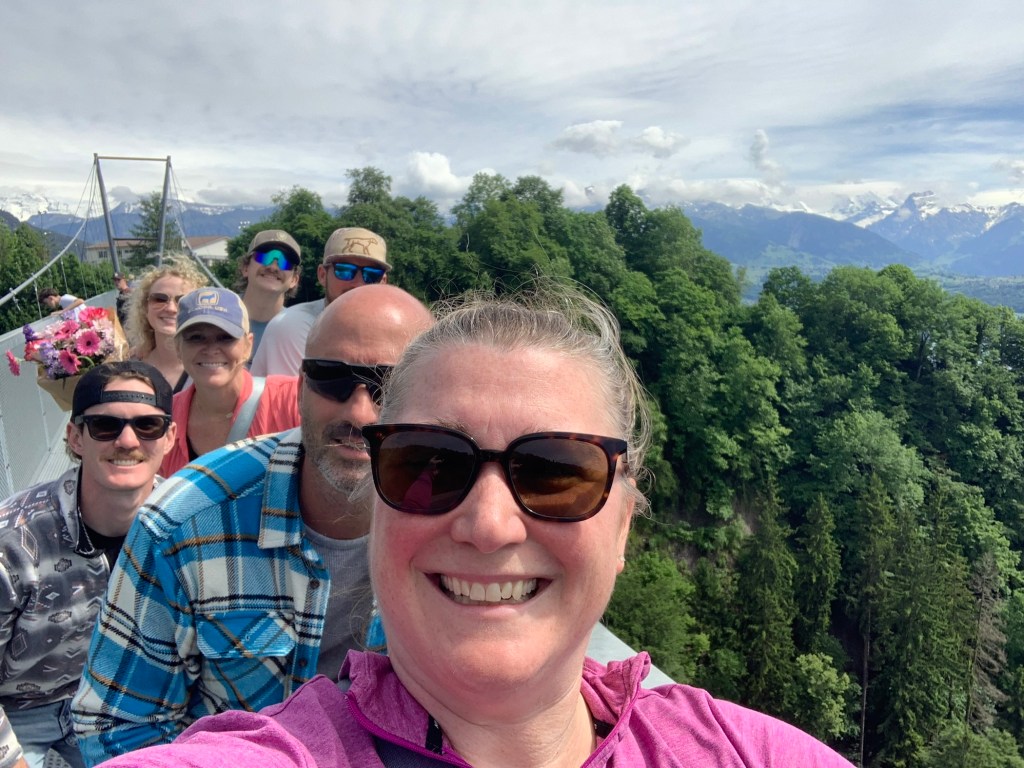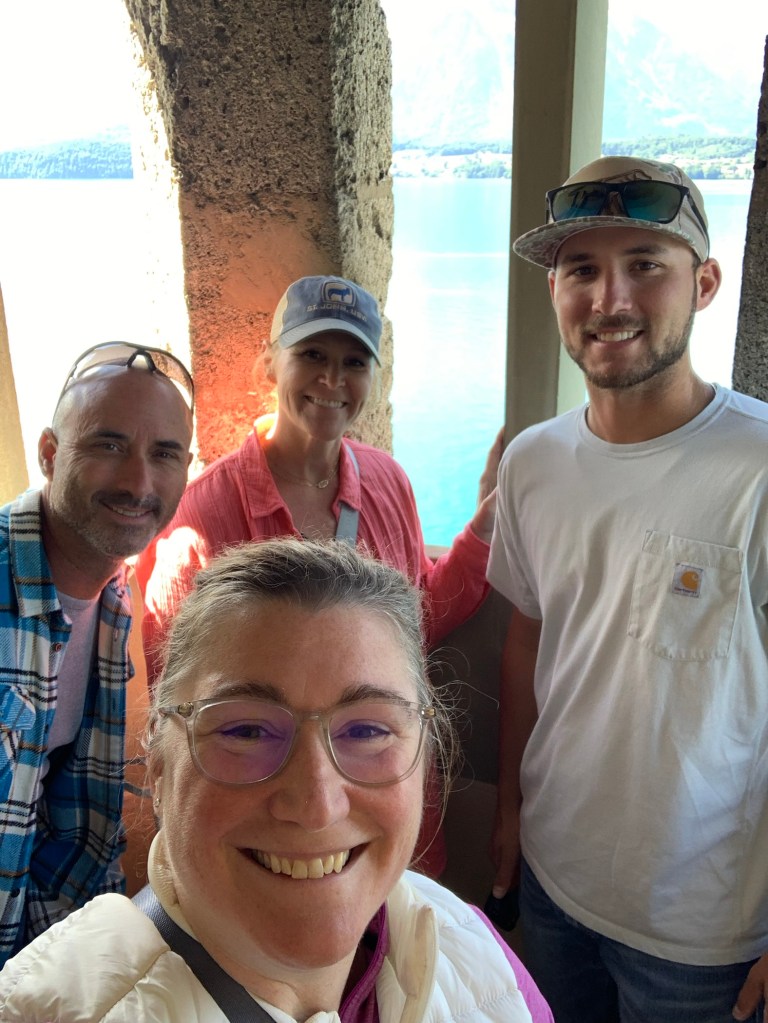 Not a photoshopped or AI background…just raw Alpine beautyWe went on a new adventure. Thanks to Adelle’s determination to figure out the ferry routes and tickets, she got us all squared away and we rode the boat 2 hours to Lucerne. We thought we would ride for a bit then hop off and take a train the rest of the way, but we were having such a great time on the boat so we just stayed.Unfortunately when we got to Lucerne it started to rain. After Jay and I spent hundreds of dollars on new rain coats (Adelle bought a 5 EUR poncho), the rain stopped. Figures.